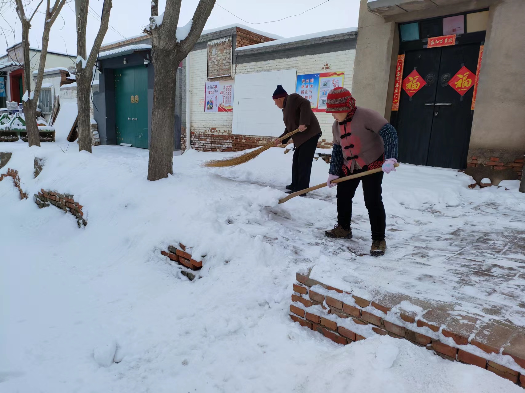 清扫积雪现场,镇村干部、党员群众、村民不畏严寒,采取“机械+人工”、“清扫+融雪”的作业方式,对镇村主干街道、通村道路及巷道等区域积雪进行全覆盖式清扫,全力营造畅通的出行环境,切实消除道路通行安全隐患。与此同时,各村两委成员组织人员优先为村里行动不便群众门口进行清扫除冰,保证他们出行安全,得到基层群众赞扬和好评。