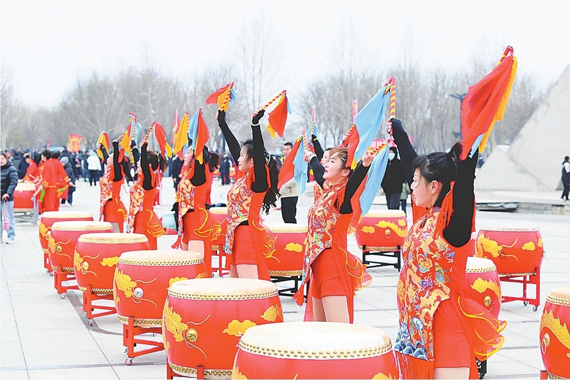 “咚咚锵!咚咚锵!……”2月24日,在衡水湖旅游景区·鸭鸭乐园北门外,来自滨湖新区彭杜村乡的村民们身穿各色表演服装,敲起锣、打起鼓、扭着秧歌“闹元宵”。