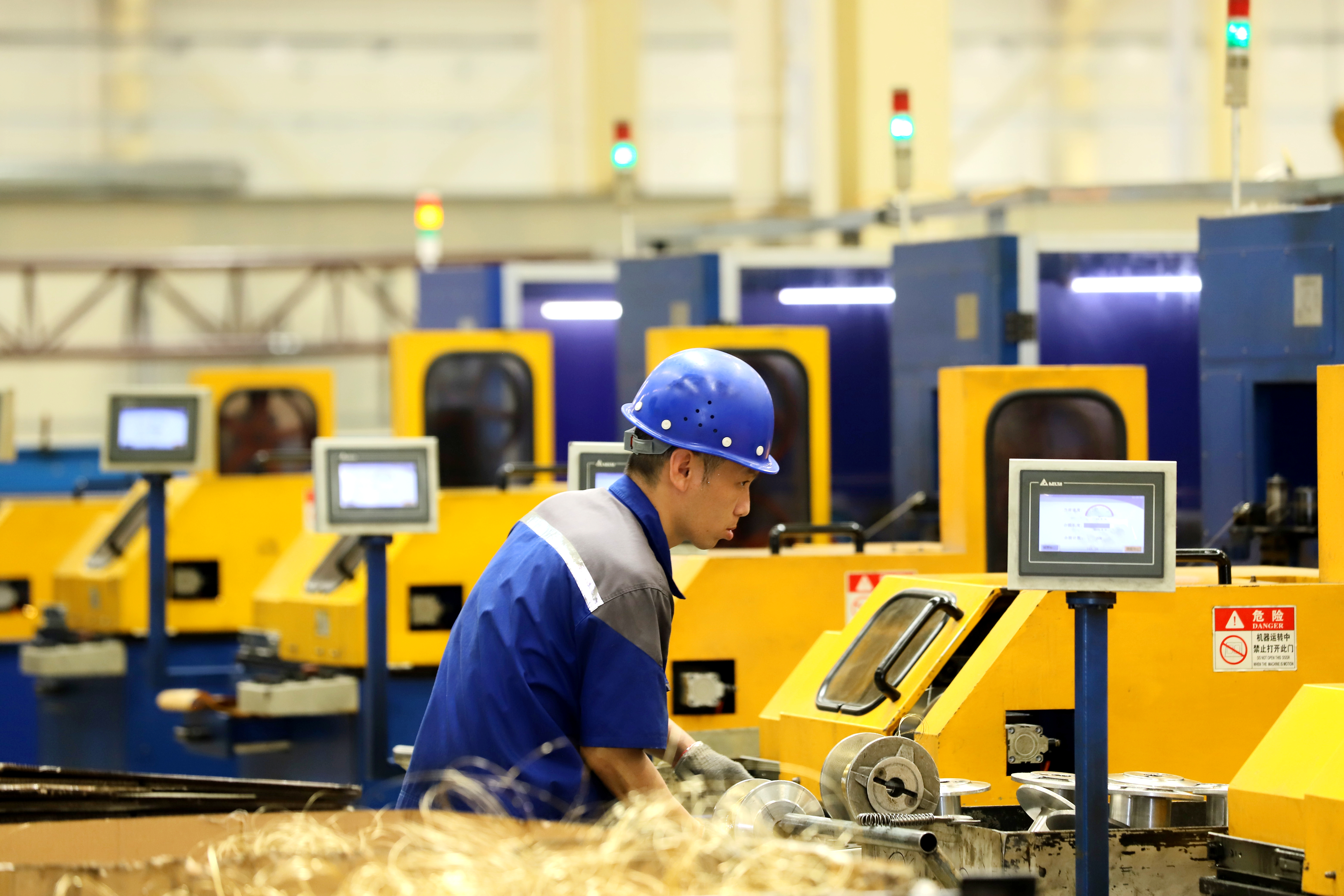 车间工人进行机械操作。景县融媒体中心供图