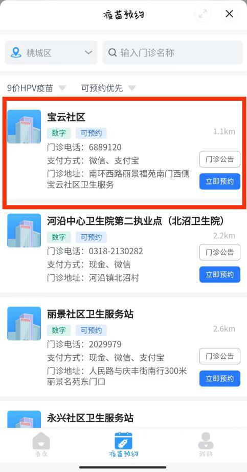 第二步:点击公众号底部【便民服务】→【HPV疫苗预约】