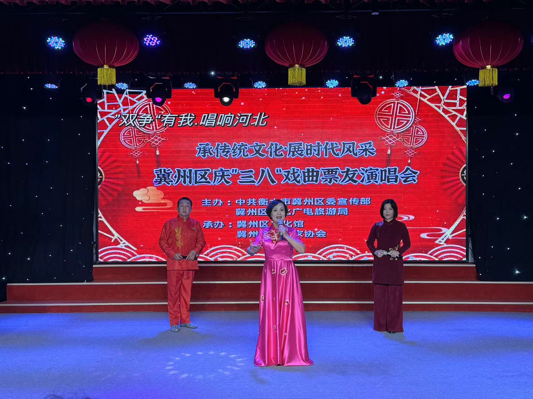 3月7日,冀州区庆“三八”戏曲票友演唱会在冀州区文化馆精彩开锣。京剧《沙家浜》《锁麟囊》《智取威虎山》《状元媒》选段、评剧 《刘巧儿》《花为媒》选段、河北梆子《洪湖赤卫队》选段等一出出耳熟能详的唱段轮番上演。演员们精神焕发、字正腔圆,用细腻传神的表演塑造出栩栩如生的人物形象,再现了家喻户晓的故事情节,赢得了现场观众的阵阵喝彩。演出以传承经典、弘扬国粹的艺术形式,向广大妇女致以节日问候和美好祝愿,也让观众们感受到戏曲艺术的魅力。