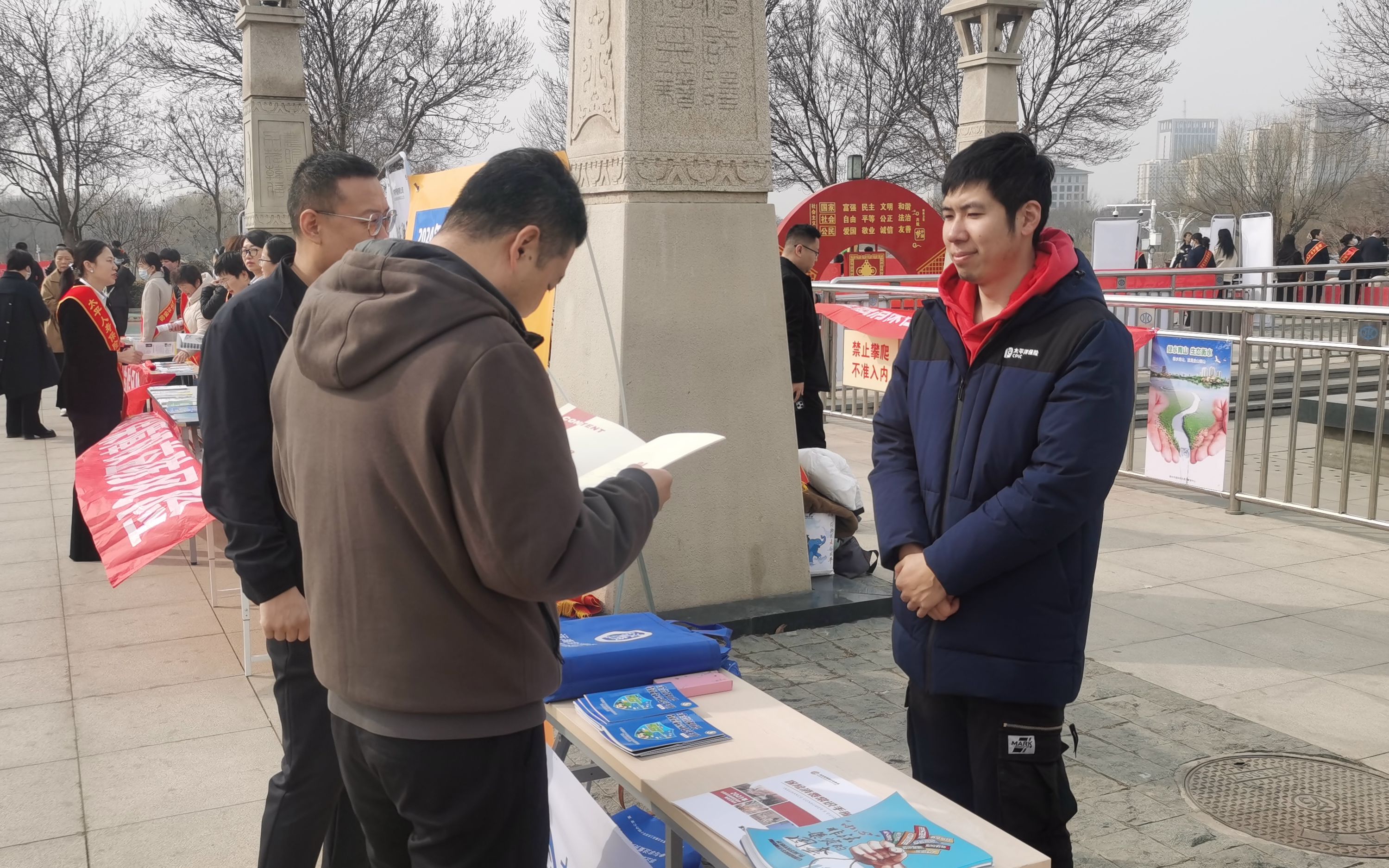 活动现场,各保险机构设置宣传咨询台、摆放宣传展板、悬挂宣传条幅,宣传人员身披公司绶带,聚焦“一老一少一新”等重点群体,以提升消费者保险素养和风险意识,增强依法维权意识和能力为目的,围绕金融消费者八项基本权利、保险消费常识、金融风险防范等方面内容,向过往群众,发放宣传折页、教育宣传手册,开展了形式多样、内容丰富的教育宣传活动。