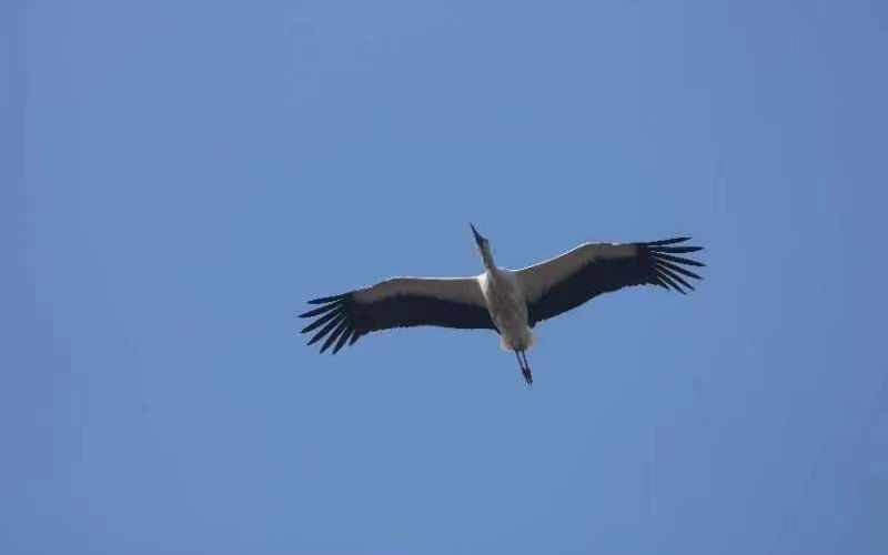 3月20日,衡水湖国家级自然保护区工作人员进行鸟类调查监测时,在湖区浅水处发现一只国家一级保护动物黑鹳。在它旁边,五只苍鹭簇拥着一只国家一级保护动物东方白鹳。东方白鹳和黑鹳虽然都为涉禽,但同框觅食的情况十分罕见。经查阅近年记录,衡水湖曾于2018年监测到黑鹳,其后近7年未曾有记录。
