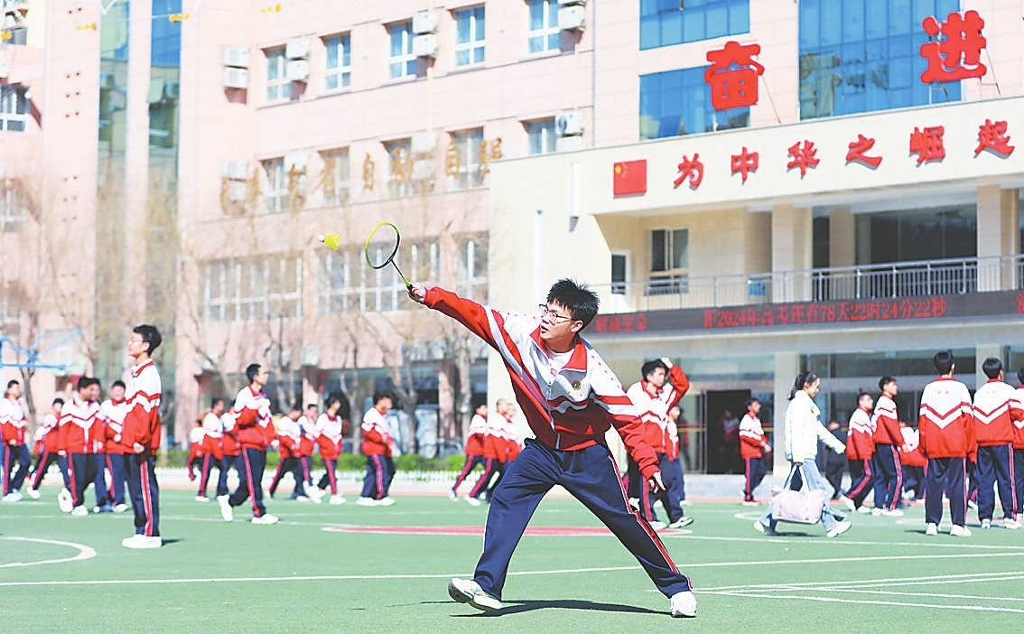 十三中学子在操场上锻炼。 陈月振 摄