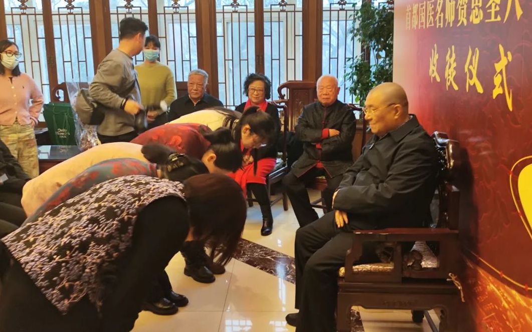 ▲ 北京针灸学会会长、首都国医名师王麟鹏教授主持收徒仪式