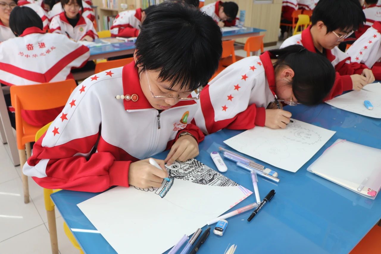 在线条创意画社团,同学们尽情发挥想象力,用特有的笔触去描绘自己眼中的世界,去表达内心灿烂的春天;