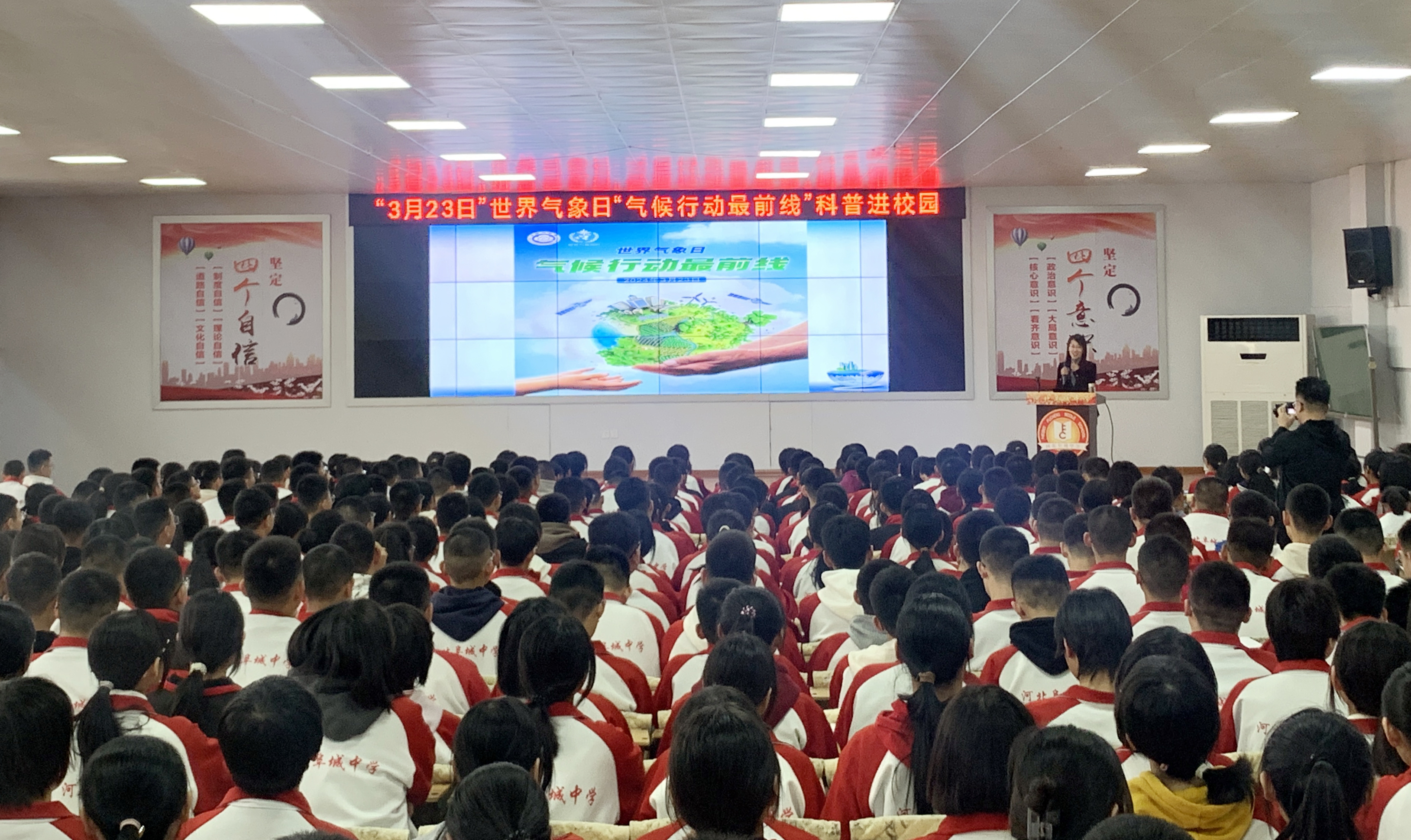 “如果有人说,在拉萨那里年日照3000小时以上,日夜温差大,这是不是也是指天气?其实则不然,前者是指天气,后者则是气候,两者概念不同。”……3月19日,河北阜城中学多媒体报告厅里,座无虚席,掌声阵阵,气氛热烈。阜城县气象局工作人员正对高一年级的全体师生们绘声绘色地讲解气象知识。