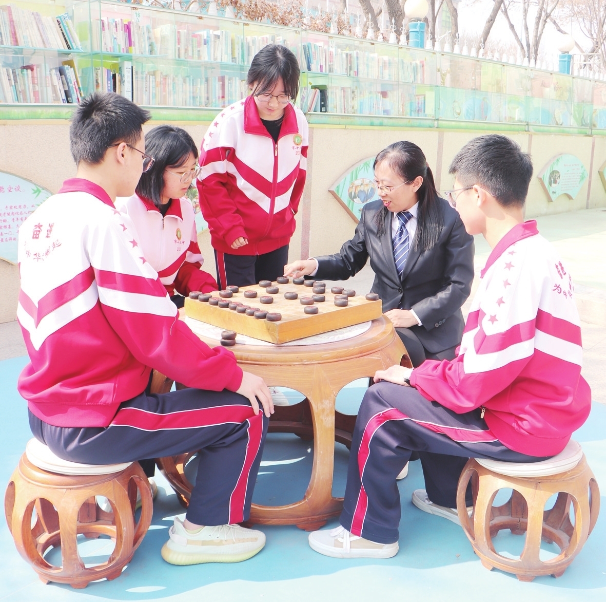 张文暖老师课余时间与学生们下棋。 刘元 摄