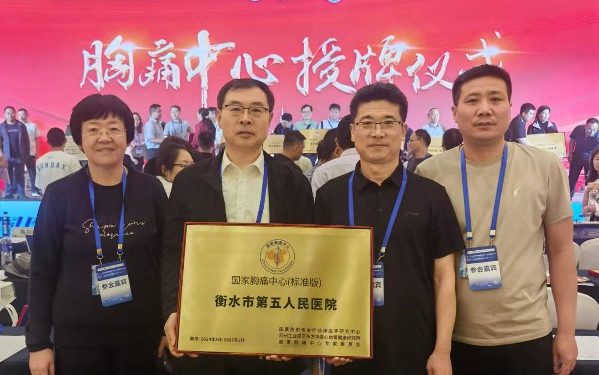 中国胸痛中心大会是由中国胸痛中心联盟主办的全国性学术会议,旨在推动我国胸痛中心建设和发展,提高急性胸痛患者的救治水平。此次大会上,衡水市第五人民医院经过严格的评审和考核,成功获得了“国家胸痛中心(标准版)”的认证授牌。