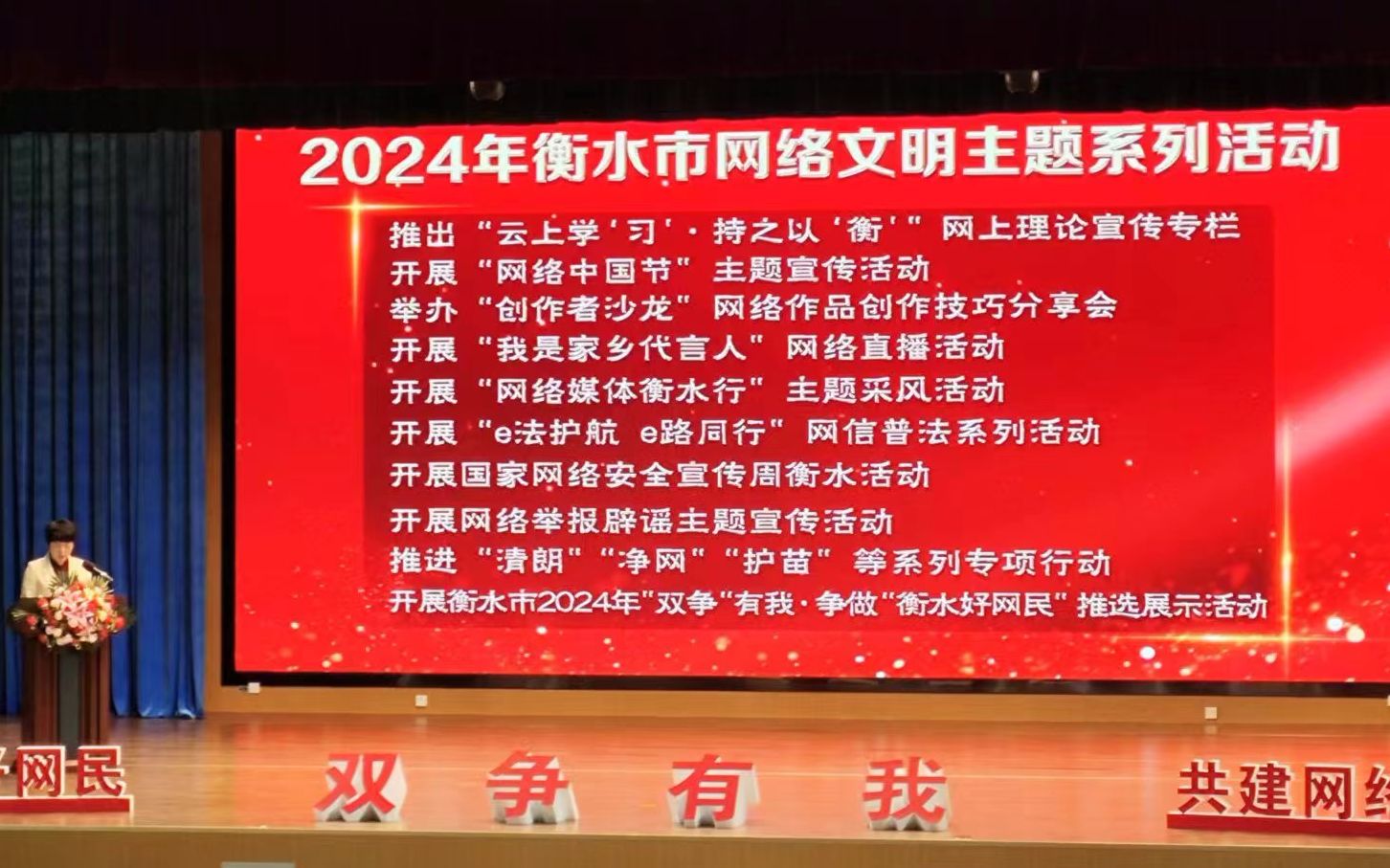 4月2日,我市2023年度“争做衡水好网民”工程总结会暨2024年度网络文明主题系列活动启动仪式在衡水市工人文化宫举行。
