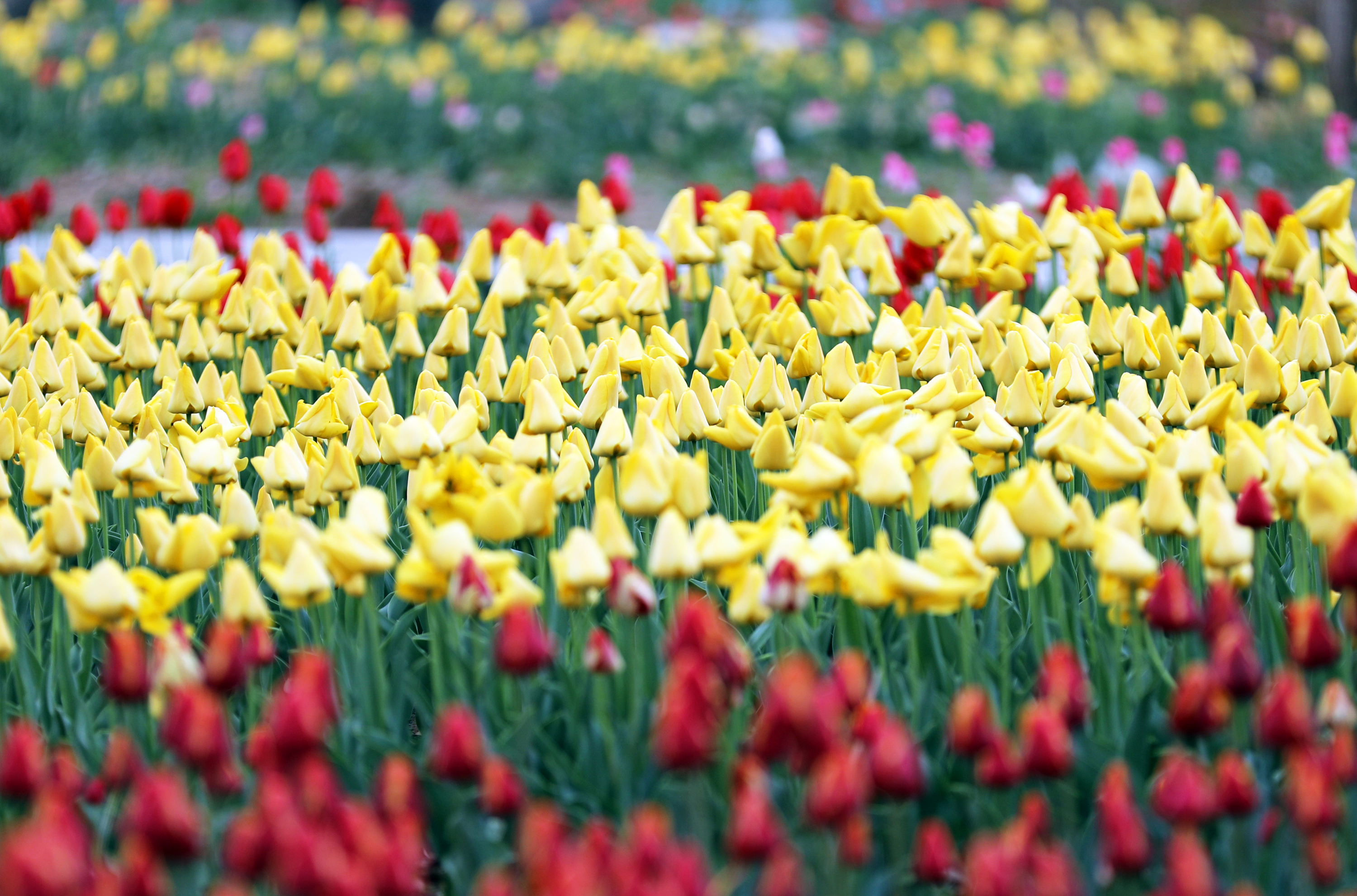 春光限定的浪漫,定格于郁金香。位于市区宝云公园内的郁金香姿态多种多样,有的花瓣已经完全舒展开,散发出阵阵的清香;有的郁金香含苞待放,像是一支支饱含墨汁的毛笔……在这里,每一朵郁金香仿佛是大自然的精灵,用它们绚烂的色彩和优雅的姿态,诉说着春天的故事。一路走下来,除了能观赏到郁金香,还有二月兰、油菜花等各色鲜花也在争相怒放。