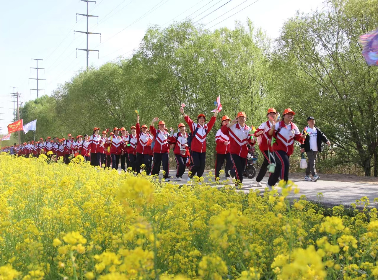 沿途中,随队教师紧跟班级队伍,时刻清点本班人数,防止学生掉队;交警、医护人员、学校后勤、家长志愿者等人员一直在人行道外侧,为学生们安全通行保驾护航。在大地花海沿途、衡水湖湿地公园门口、衡水湖出口、彩虹桥口等几个主要加油助力点,家长们提前做好准备,拉起条幅、举起牌子,等学生们到达点位后,为他们摇旗呐喊。