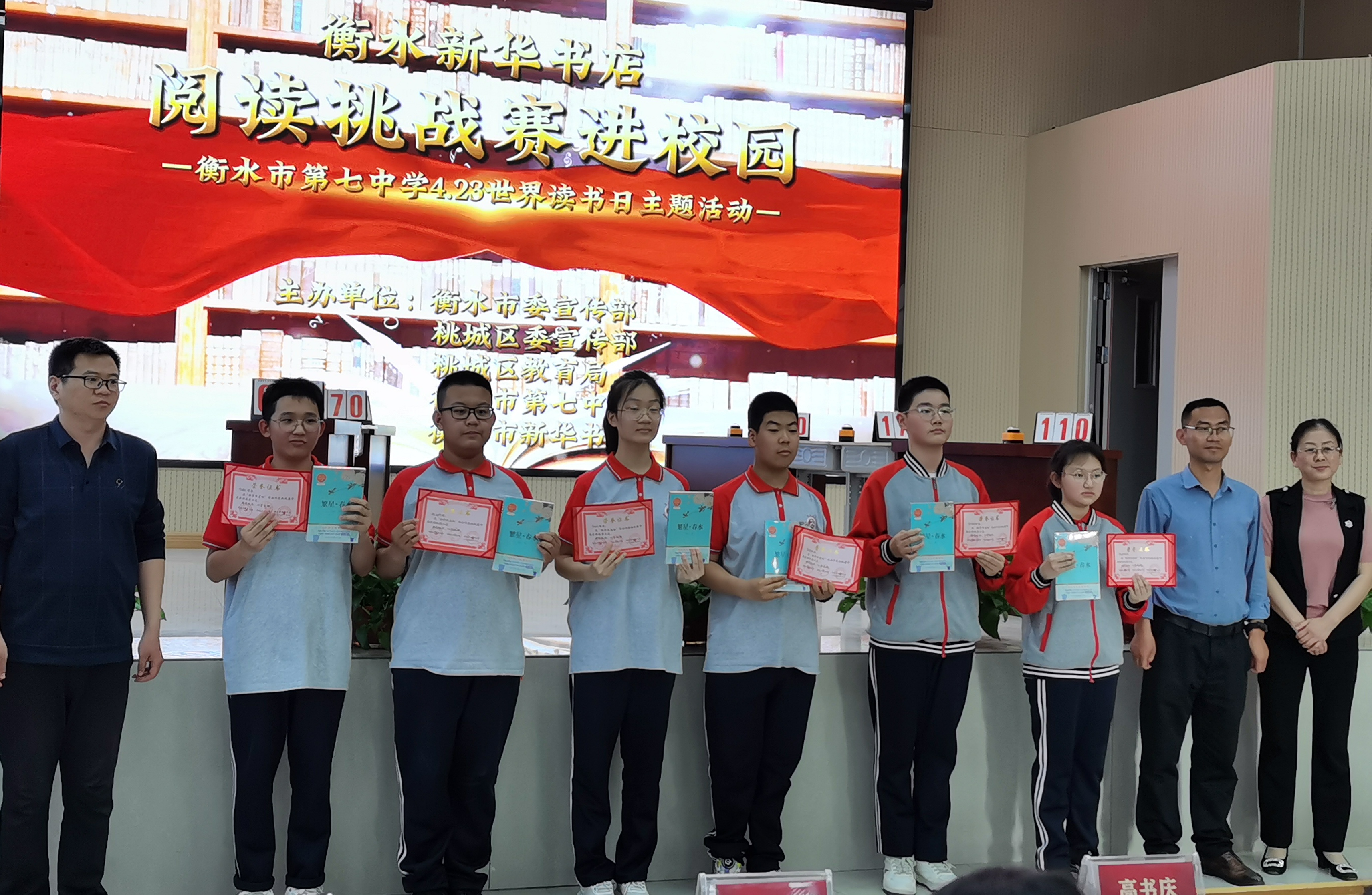 “3、2、1,开始!请5号台回答……”4月17日下午,衡水新华书店阅读挑战赛在市第七中学举行。