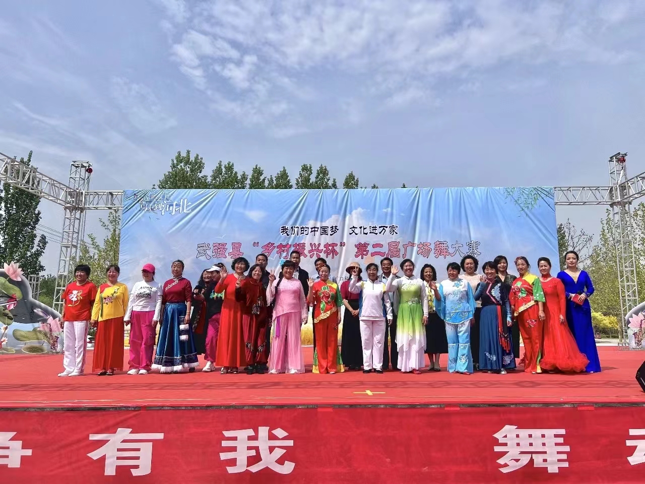 4月19日,“我们的中国梦,文化进万家”武强县“乡村振兴杯”第二届广场舞大赛在该县平安公园举办,来自全县的26支广场舞代表队同台竞技,舞出健康新风尚。