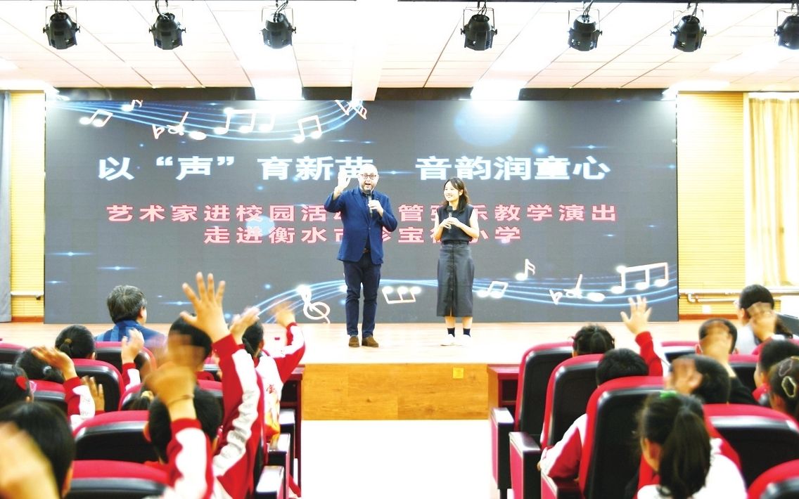 本报讯(高子桢)为进一步提高学生的艺术素养,大力弘扬美育精神,落实强化学校作为育人主体的美育育人功能,4月11日,衡水市珍宝街小学迎来了一位特殊的客人——英国著名演奏家蒂姆·奥罗伊德,为管乐团的同学们带来了一场精彩绝伦的大师课。