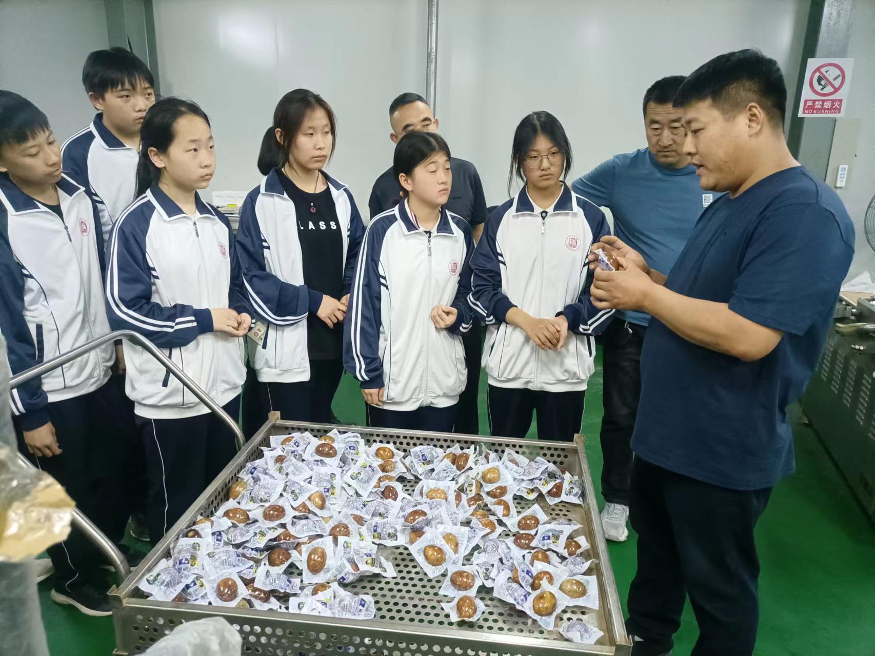 衡水湖烤鸭蛋是衡水特色美食,具有浓厚的历史文化价值和地域特色,其制作技艺汇聚了湖区劳动人民的智慧和劳动的传统文化内涵。当天下午,工坊内,“盐河故道”烤鸭蛋品牌的创始人王铁证为学生们讲解了烤鸭蛋的历史渊源,以及传统制作流程,并指导学生们动手参与进来,挑选鸭蛋、调制泥浆、浸泡、烤制……大家在王铁证的指导下,小心翼翼地参与到烤鸭蛋的一道道制作工序中。“每一道工序听起来很简单,但通过现场观看和尝试,我们才发现每一步都需要用心,原来美味的烤鸭蛋需要这么精心地制作才能完成。”现场,学生张丽兴奋地说。随后,学生们还参观了位于滨湖新区半壁店村的烤鸭蛋企业,了解烤鸭蛋制作中的现代化清洗、包装、杀菌等设备,感受传统工艺与现代技术的结合。