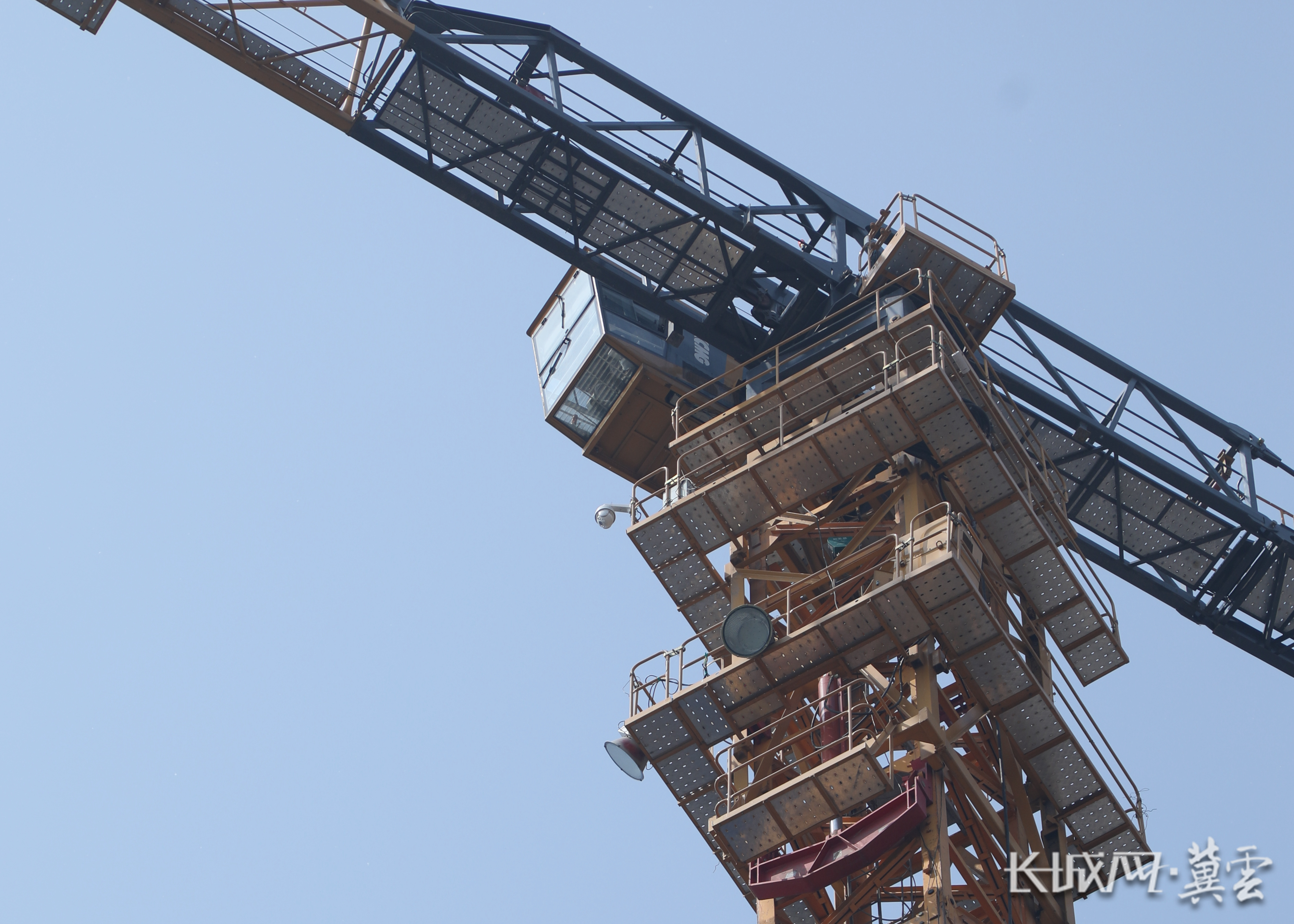 塔吊上的监控能实时俯瞰工地全貌,上传高度、摆幅、吊幅重量等数据。长城网·冀云客户端记者 杨蕾 摄