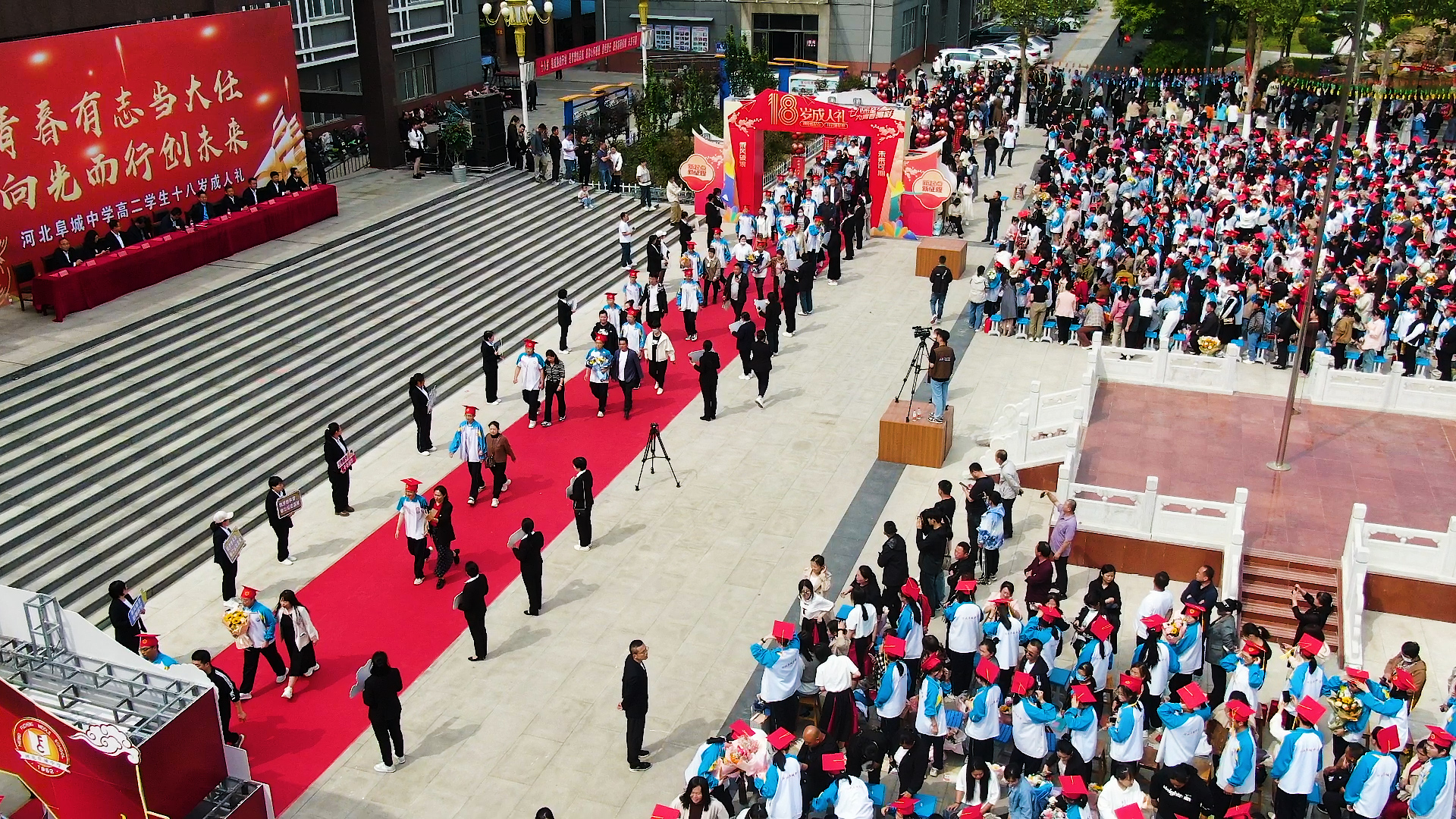 4月30日上午,河北阜城中学隆重举行2024年高二学生18岁成人礼活。活动在学校小广场举行,主席台矗立着彩色巨型展牌,上书“青春有志当大任,向光而行创未来”,广场两侧悬挂条条励志标语,渲染出“青春、感恩、责任、未来、梦想、未来”的活动氛围。