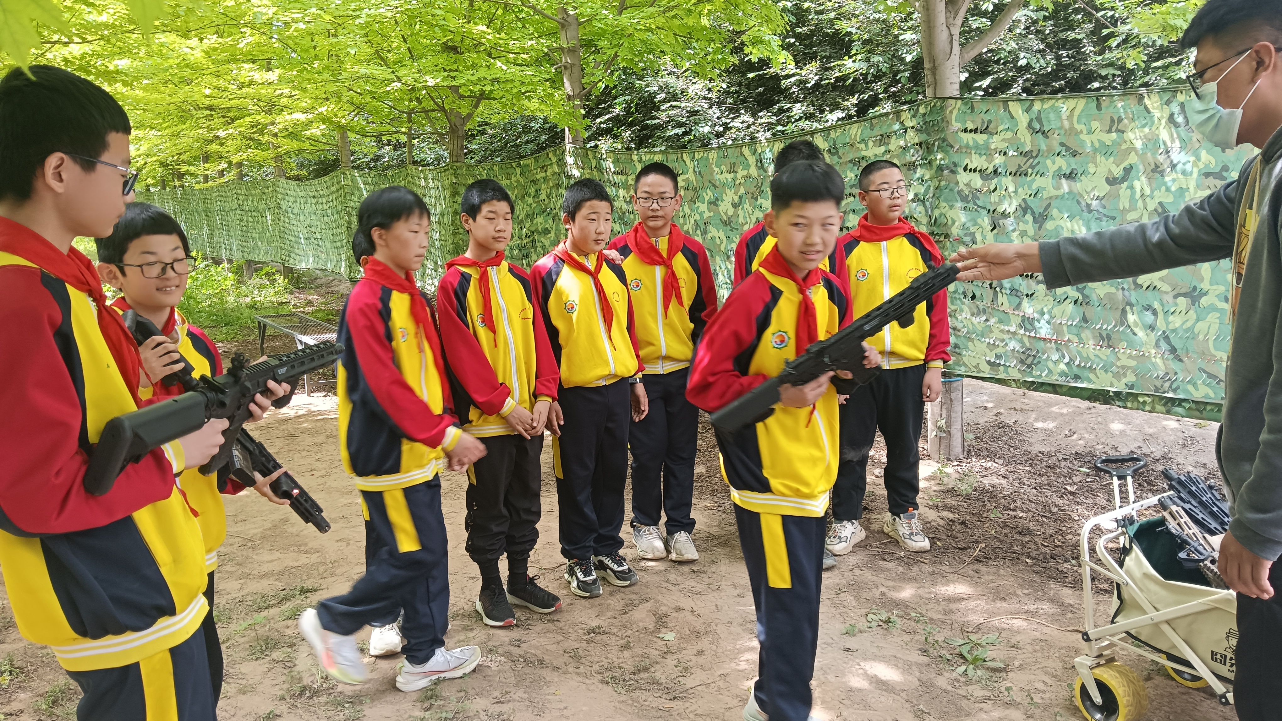 在雄壮嘹亮的国歌声中,开营仪式正式拉开帷幕。同学们个个精神抖擞,身姿挺拔,俨然一个个英姿飒爽的小士兵。在教官带领下,大家开始了一系列军事活动的体验。拓展小游戏之萝卜蹲,考验了孩子们的反应能力,让大家明白了团队协作的重要性;投掷手榴弹、射击体验,让孩子们了解中国军事历史的发展和现代军事技术的进步;真人CS战分组对抗赛,孩子们勇敢冲锋、机智布阵,在一次次比拼中磨炼了意志,更锻炼了团队合作、全局观念等综合能力……一系列的体验活动,让孩子们在实践中了解国防安全的重要性,进一步激发了他们的爱国情感。