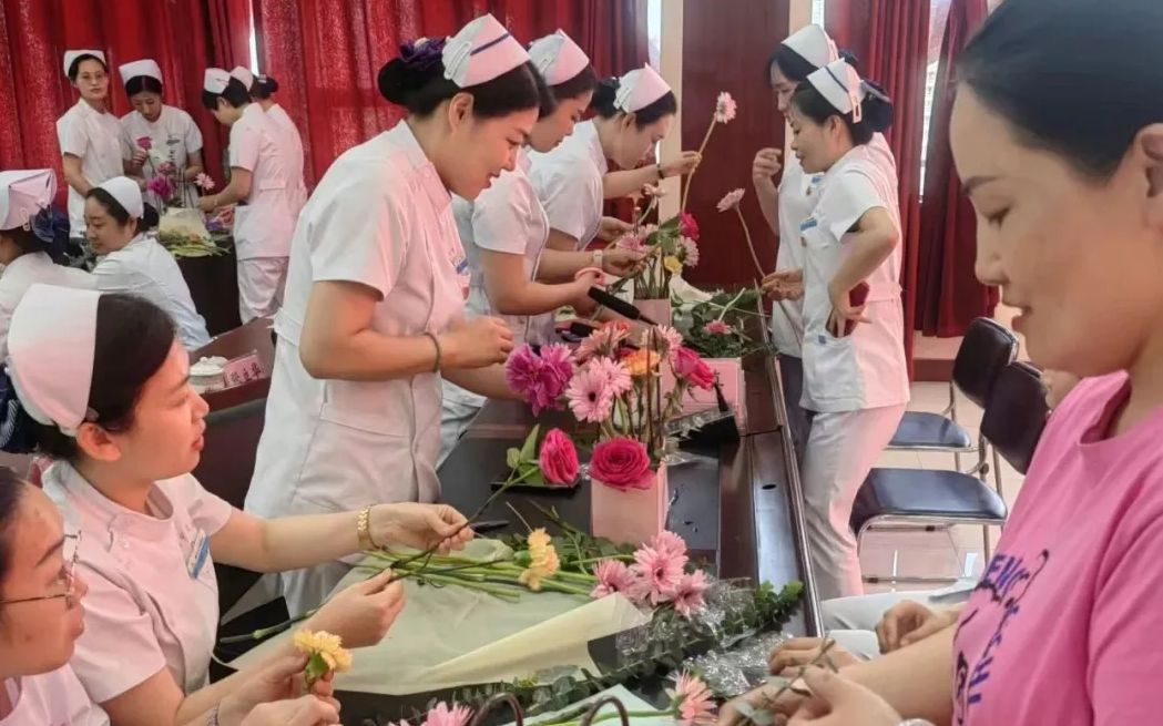 活动结束后,全院护理人员在专业的花艺师讲解下,学习了插花艺术的相关知识。一件件芬芳盛开的插花作品在各位白衣天使手中诞生,仿佛诉说着护士姐妹们绚丽多姿的人生,大家在欢声笑语中度过了一个意义非凡的节日。
