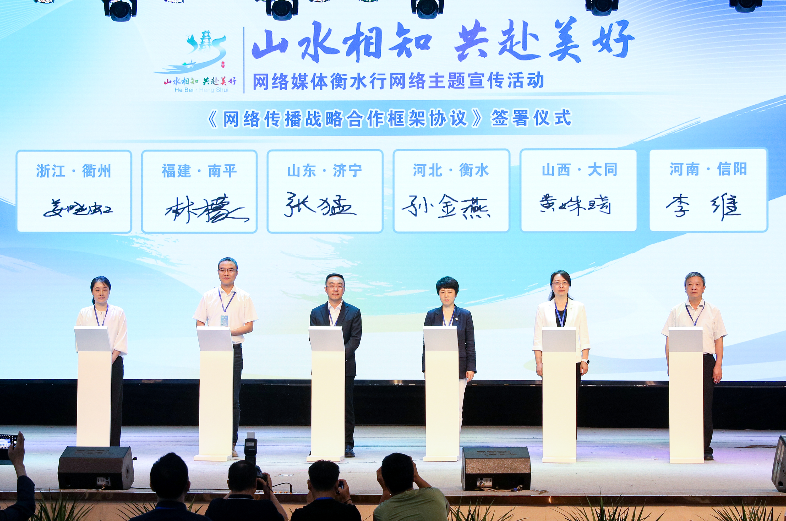 5月13日,在“山水相知 共赴美好——网络媒体衡水行”网络主题宣传活动中,我市与济宁市、衢州市、南平市、大同市、信阳市共同签署《网络传播战略合作框架协议》,充分发挥各方优势特色,形成合作互动、优势互补、互利共赢的工作格局。