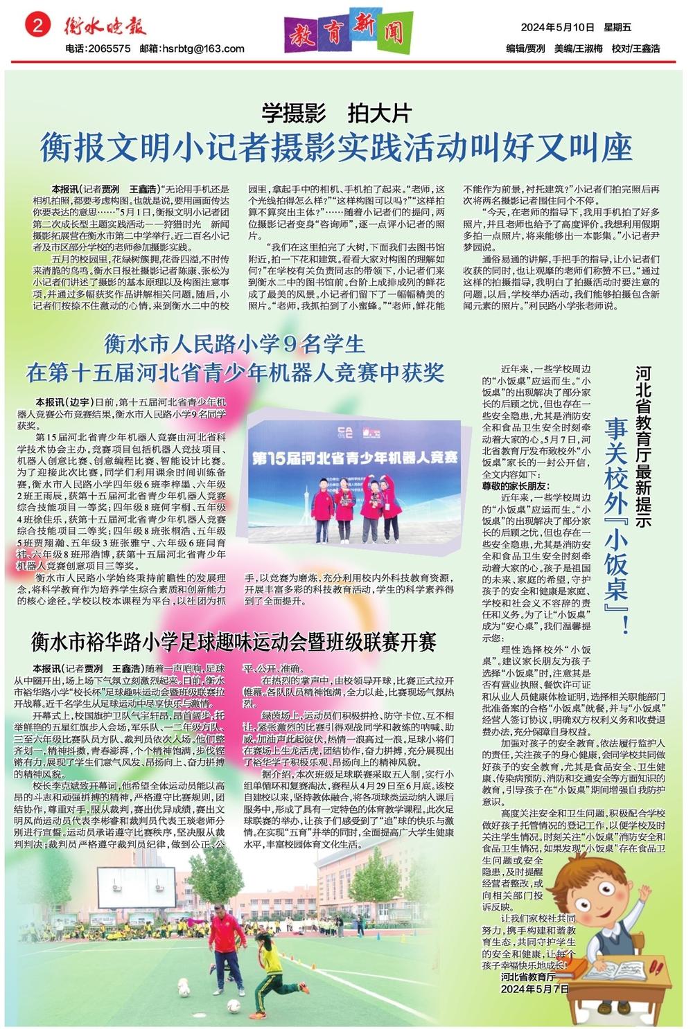 本报讯(边宇)日前,第十五届河北省青少年机器人竞赛公布竞赛结果,衡水市人民路小学9名同学获奖。