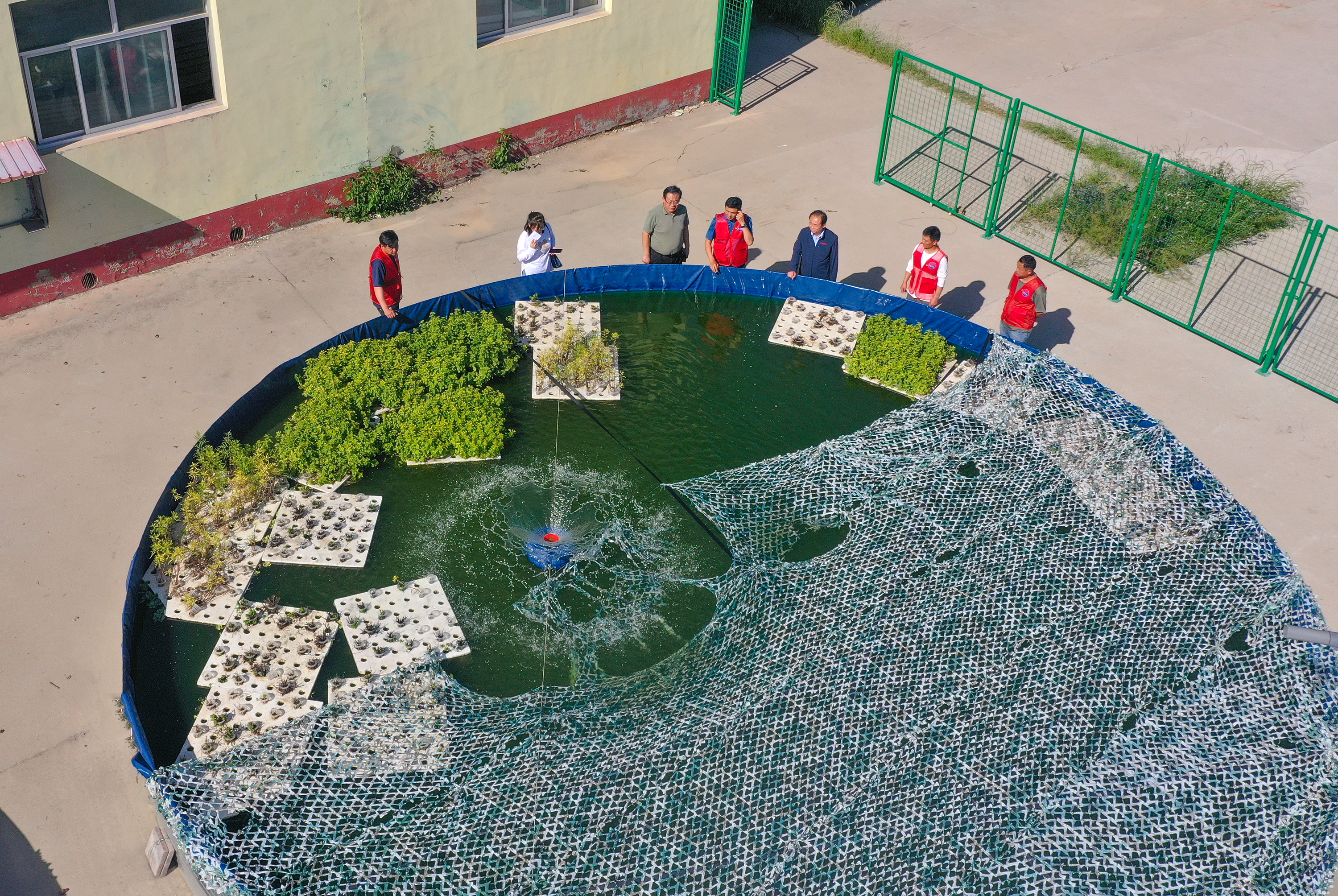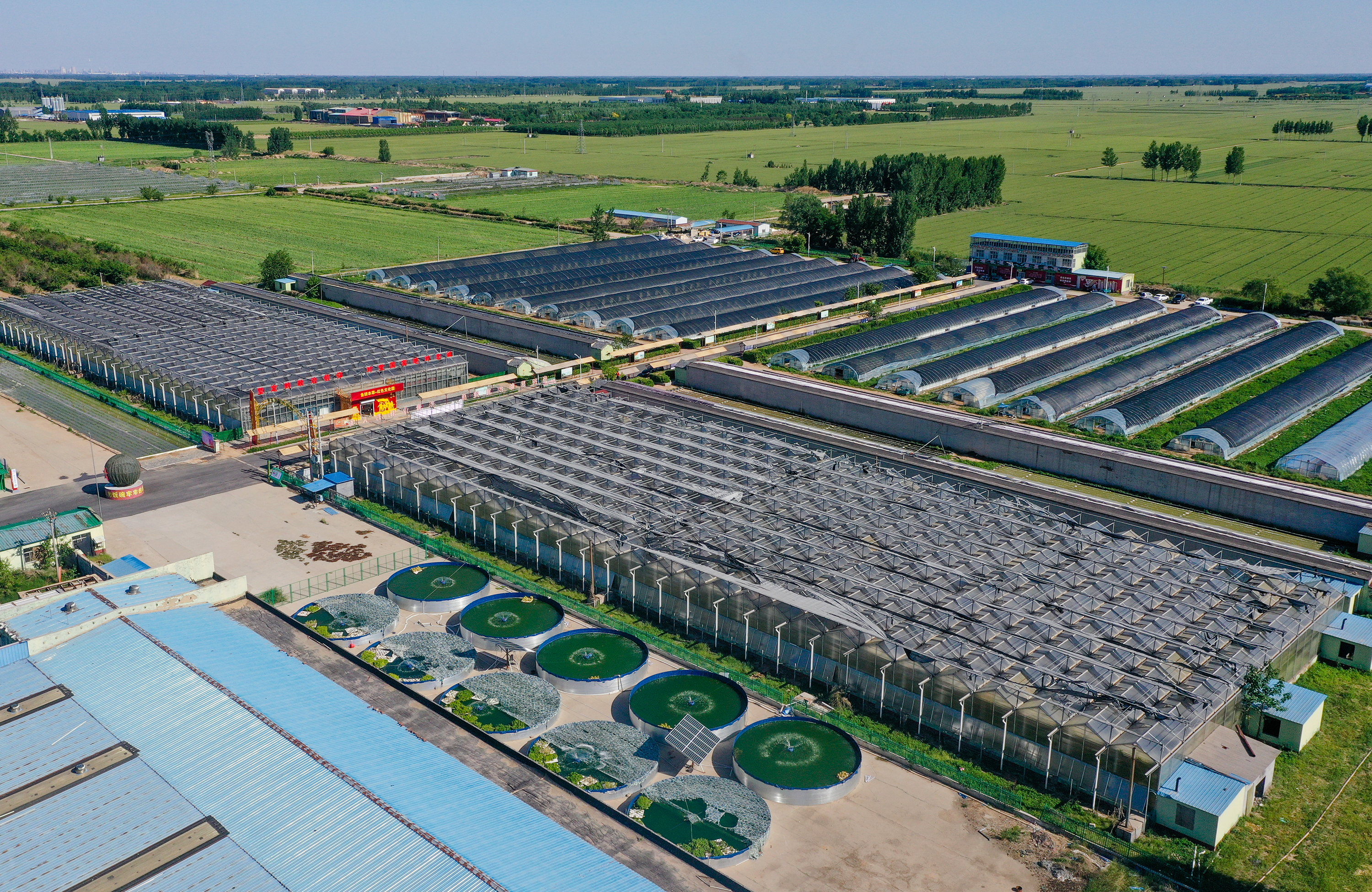 初夏时节,景县大地树木葱茏,繁花似锦,处处散发出勃勃生机。走进河北增硕农业技术开发有限公司,放眼望去,一排排“鱼菜共生”设施棚在阳光下闪闪发光,棚前的水稻秧苗郁郁葱葱,茁壮成长。设施棚内,一尾尾鲈鱼在圆形铁皮鱼池内畅游正欢,生菜、芹菜等水培蔬菜鲜嫩碧绿,蔬菜根部的水与鱼池里的水24小时不间断循环流动。“这些水培蔬菜如何实现净化鱼池水质的?”“为何要选择薄荷、豌豆苗、芹菜等作为净化水质的蔬菜种类?”……穿梭在一个个“鱼菜共生”设施大棚,采访团一行认真聆听、仔细询问,深入了解“鱼菜共生”系统,感知农业新质生产力的脉动和积蓄的蓬勃力量。