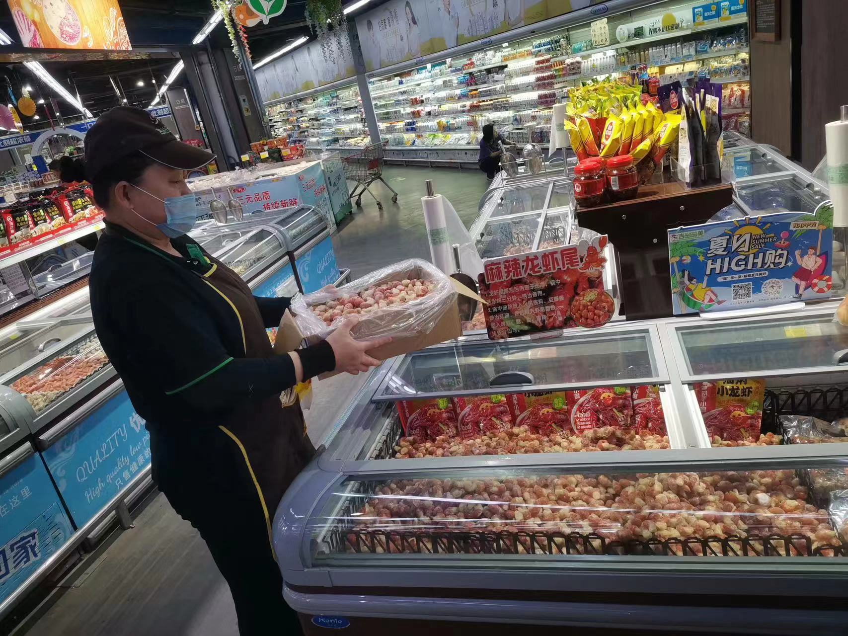 侯文成说,今年整体小龙虾价格跳水,4月初价格就以接近往年最低价位。吉美超市抓住这个市场契机,在门店的卖场扩大鲜熟卖场陈列呈现,结合线下课堂、线上直播教大家如何通过闻气味(生长于良好环境(水域)的小龙虾带有一股自然的虾腥味,没有腐败等异味)、看外观(新鲜的小龙虾鲜亮饱满,外壳干净、色泽均匀,虾头虾尾紧密连接,尾部弯曲有力)、判活力(鲜活小龙虾四肢完整、活动敏捷。如外界物体靠近小龙虾正面时,其螯足会张牙舞爪,说明活力很强。龙虾的头部,尽量不要吃)等来选购好小龙虾。同时,就如何进行家庭烹饪,从如何去除虾头、虾线等清洗开始,到制作各个环节进行精心指导,一举打造出了季节性单品。
