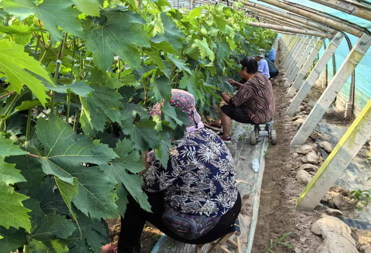 该村党支部书记介绍,本村有日光温室95个、设施大棚275个。今年开春以来,由于气温持续上升,设施大棚内的葡萄生长迅速,疏果工作集中爆发。一时间,工人大量短缺。村里利用“零工超市”发布信息,面向周边村镇招聘疏果工人,收到了良好效果:每天有超过100余名工人,到村里从事疏果作业,这种情形已持续近一个月,大大缓解了葡萄种植户们的用工问题。