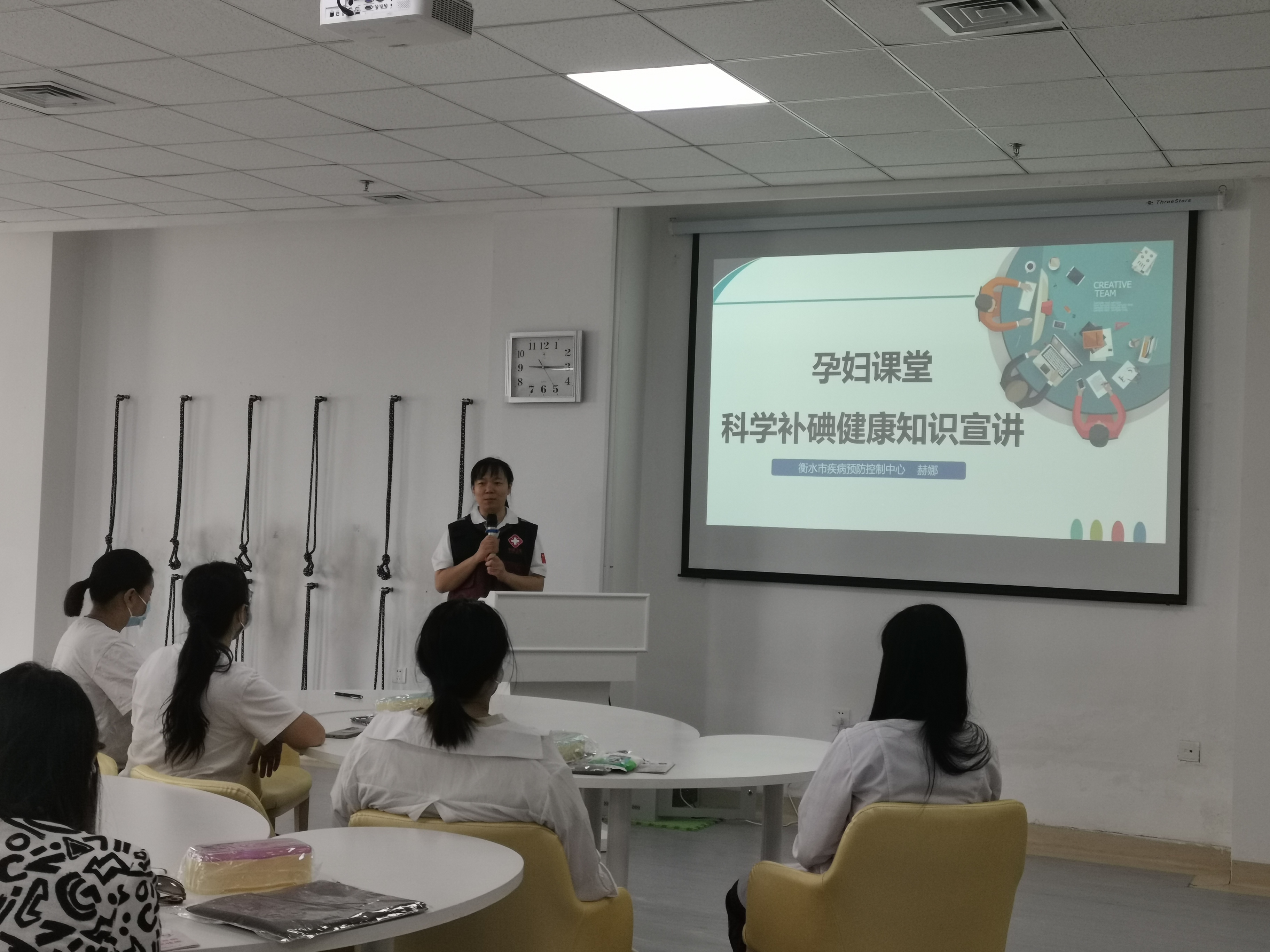 在市妇幼保健院,市疾控中心向参加孕期培训的孕妇家庭进行了防治碘缺乏病知识的宣讲,围绕碘的重要作用、妊娠期缺碘的危害、妊娠期为什么容易缺碘、如何科学补碘等方面进行科普,并纠正了大家存在的一些饮食误区,提升孕妈妈对健康营养重要性的认识。
