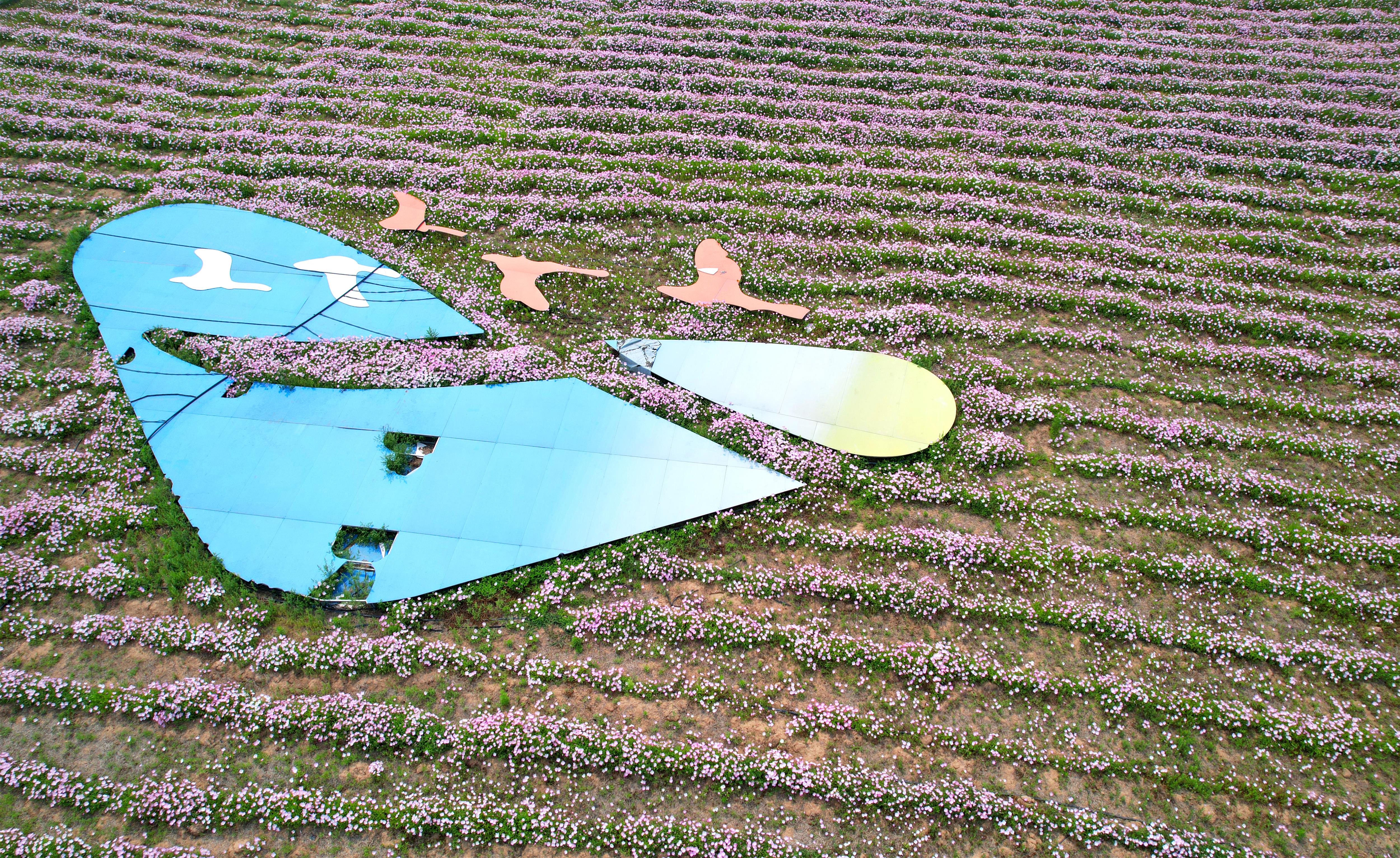 5月21日,在园博园内,游人如织,他们或牵手漫步花海,或乘坐观光车穿梭,或与花儿合影留念,园区内传来阵阵欢声笑语。沿着宽敞的主游路前行,映入眼帘的是一大片盛开的月见草,花朵密密匝匝,簇簇相拥,宛如云霞。举目望去,粉白色的花朵,在蓝天映衬下,格外清新美丽;天空中不时有候鸟在头顶飞旋,或尽展身姿,或放声歌唱。花海舞动,鸟儿鸣叫,游客穿梭其间,犹如徜徉在童话世界。