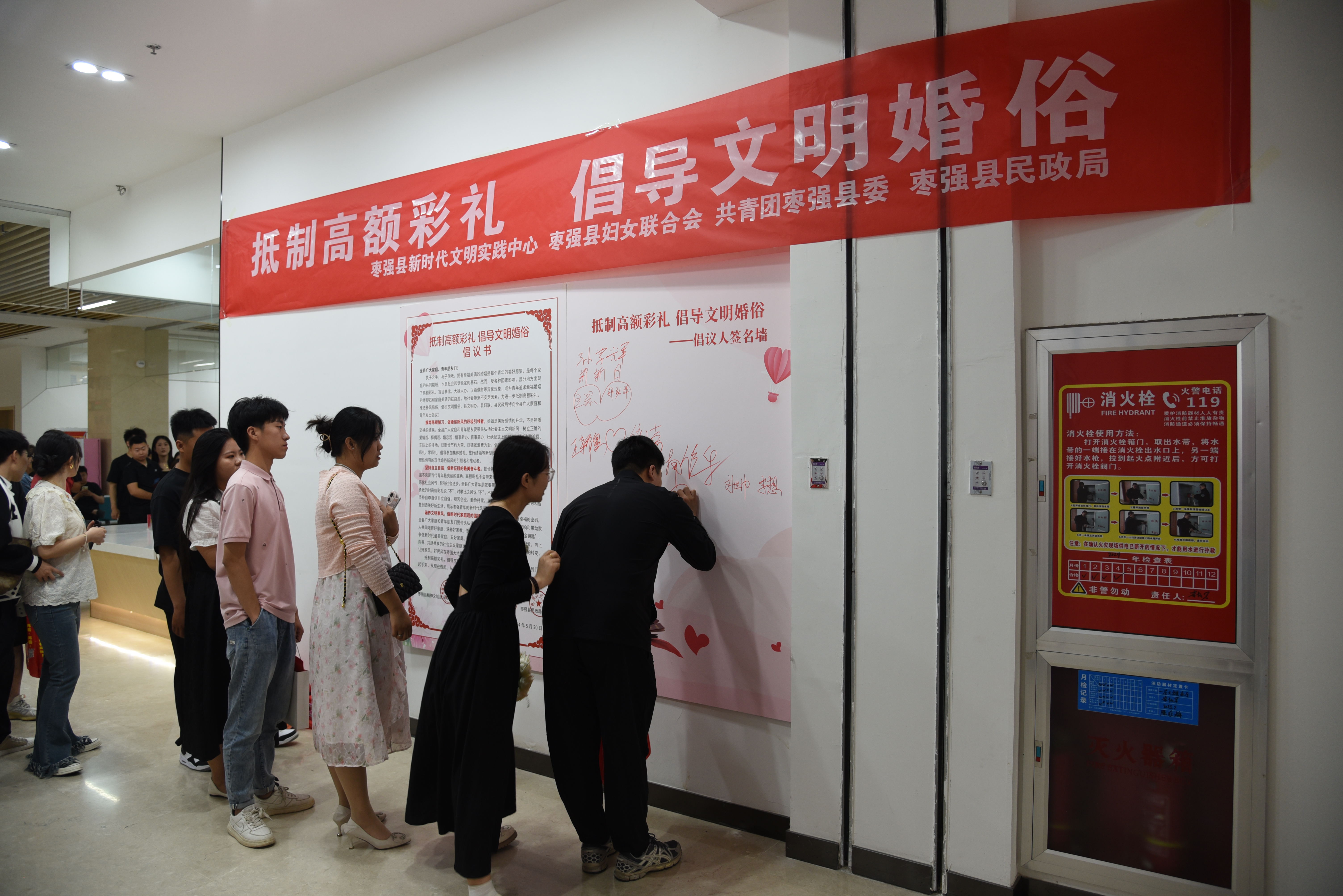 近日,枣强县委宣传部联合县妇联、民政局、文明办、团县委开展了以“祝福新人 为爱护航”为主题的倡导文明婚俗实践活动。