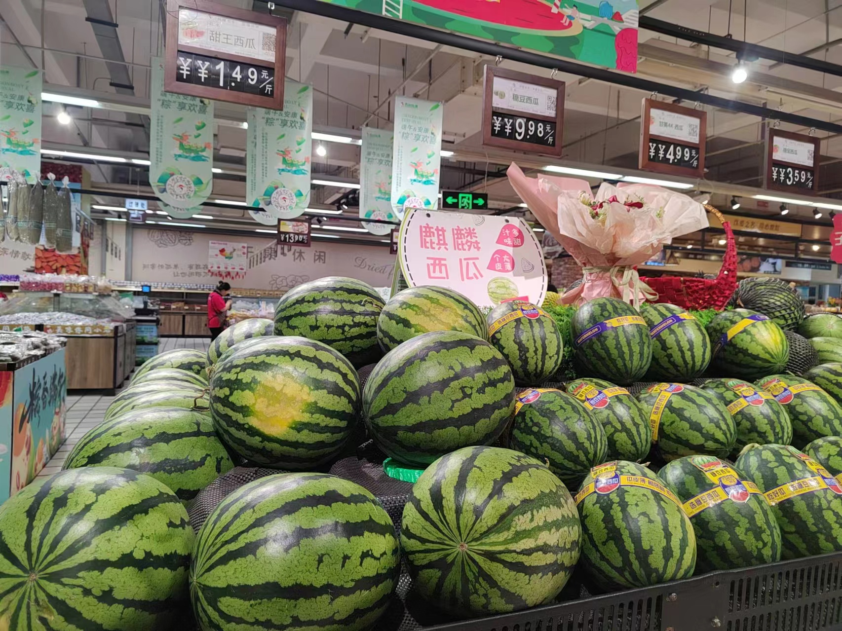 在中心大街一大型超市的水果区,西瓜已被放在最显眼的位置。记者看到,西瓜种类丰富,有甜王西瓜、麒麟西瓜、还有特小凤、糖宝、黑美人等品种,每公斤价格在2.98元到19.96元不等。“我家经常买甜王西瓜,不仅水分大,口感也好。”市民靳女士告诉记者,家里人少,都是现吃现买,买整个西瓜吃不完,她一般就买半个。