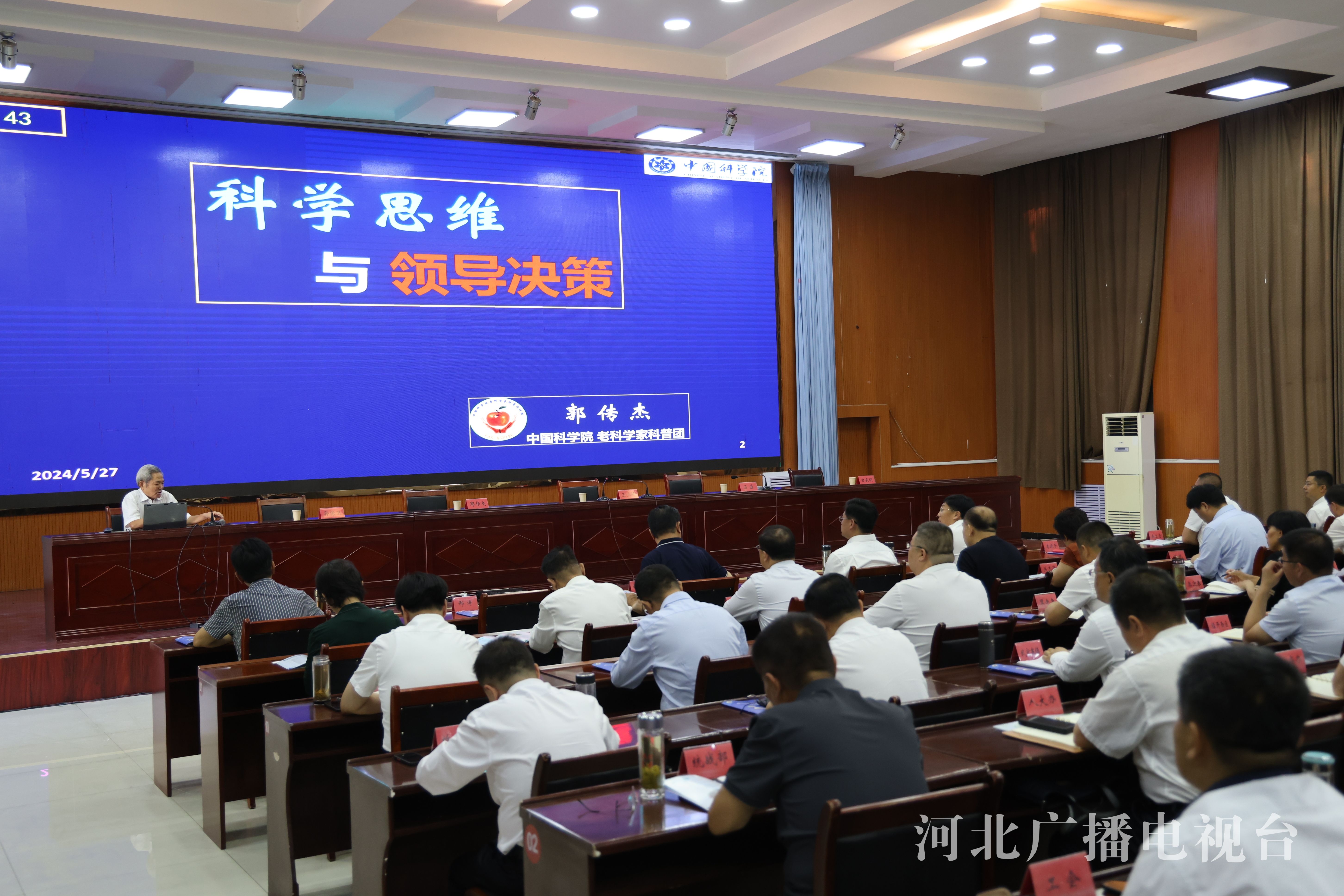 在故城县委小会堂,中国科学院老科学家演讲团成员、研究员、博士生导师,国际欧亚学院院士郭传杰就《科学思维与领导决策》开授第一堂课。