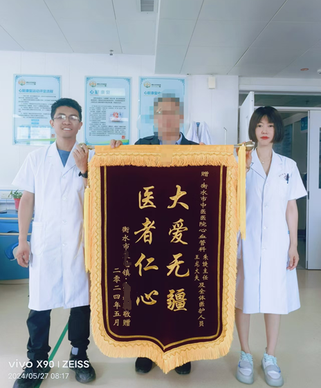 “非常感谢衡水市中医医院心血管病科全体医护团队,感谢你们这么短的时间里救了我一命……”近日, 患者张某将一面写有“大爱无疆 医者仁心”的锦旗送到了衡水市中医医院,以表达对医院心血管病科医护团队的感激之情,感谢他们用自己的专业知识和精湛技术,成功挽救了自己的生命,为他和家庭带来了希望与新生。