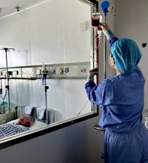历经4小时40分钟的造血干细胞采集,经3小时20分钟的数据检测,达标后再进入无菌仓7天时间的准备,然后输入自体造血干细胞,再经17天的艰难治疗:每日进行五官的细致护理、肛周护理……每一步都不折不扣地执行着无菌要求。接下来,要帮助患者闯过预处理化疗药物反应、干细胞输注反应、皮肤黏膜脏器损伤、骨髓抑制期感染等一道道难关,最终成功出仓。