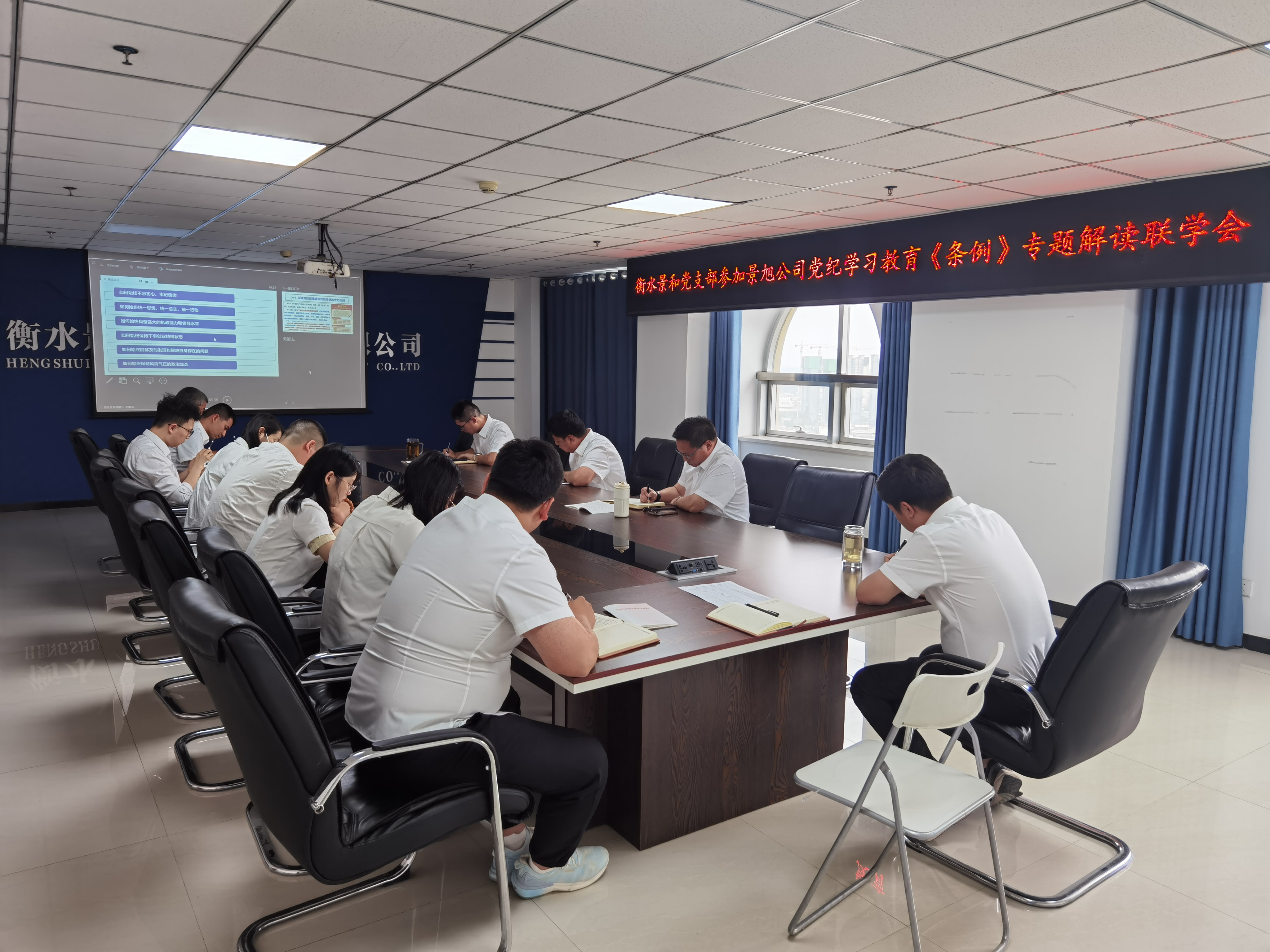 学纪筑基,把党纪学习教育同集中学习相结合。制定《衡水景和项目党支部关于开展党纪学习教育的实施方案》,构建“支委领学+骨干研学+党员自学”三学机制。项目党员以“学党纪 提品牌 促经营”为主题开展交流研讨,全面准确把握新修订《条例》的主旨要义,力争内化于心、外化于行,推动《条例》入脑入心。截至目前,项目党支部以“三会一课”、主题党日等形式开展学习8次。