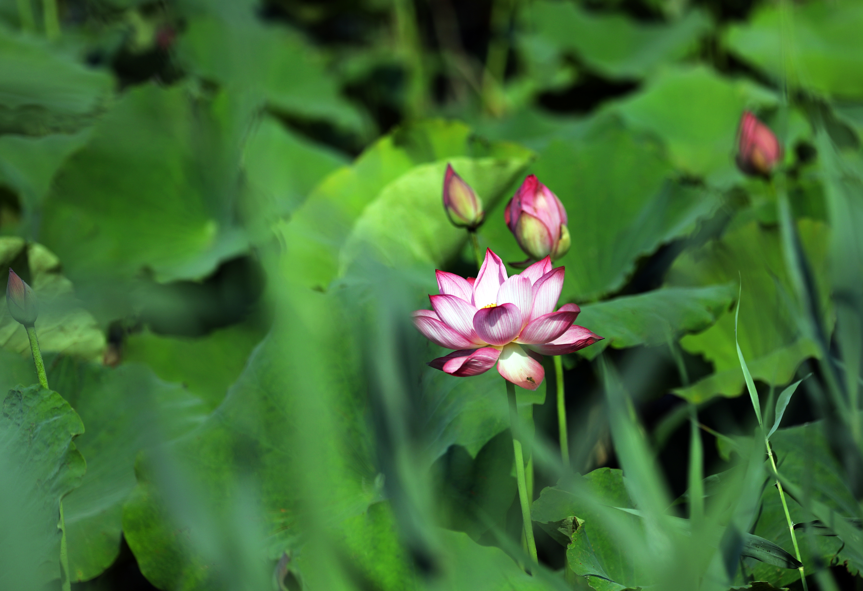 6月14日,在衡水湖畔的荷花池里,朵朵荷花亭亭玉立,它们有的含苞待放,有的初露芳容,有的全然盛开,每一朵都以不同的风姿展现着夏日的生机与活力;花瓣层层叠叠,或白如雪,或粉如霞,美不胜收;花蕊金黄璀璨,点缀着花瓣,使其更显高贵与典雅。