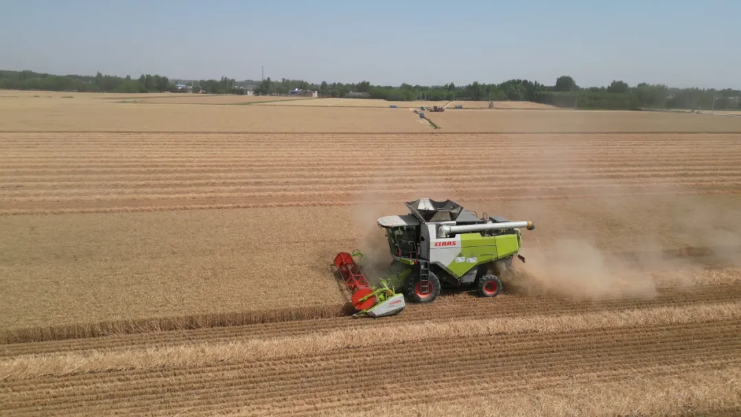 目前,武强县街关镇蔡留贯村1119亩小麦成熟,村民抢抓晴好天气,紧锣密鼓地收割小麦。一望无际的麦田里,一台台大型收割机轰鸣着来回穿梭,麦秆卷入机器,饱满的麦粒如金色的瀑布般倾泻而出。