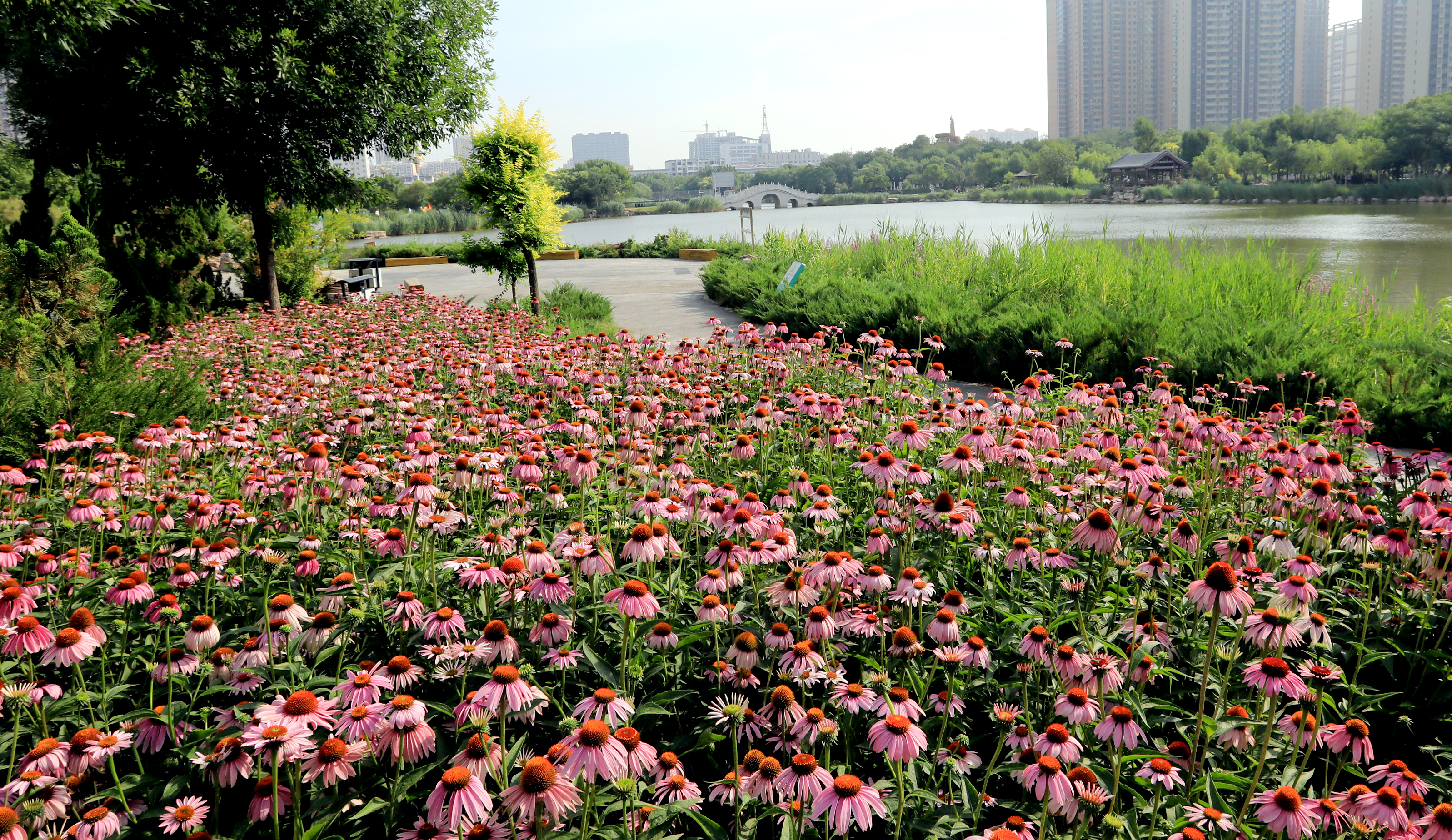 仲夏时节,市区人民公园内绿树成荫、荷花绽放,美不胜收,吸引了众多市民驻足观赏游玩儿,成为了人们休闲健身的好去处。