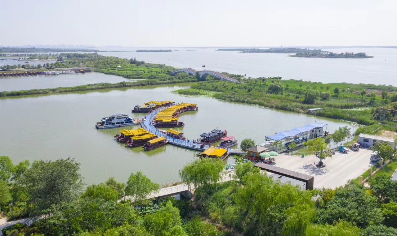 水流涓涓,鸟鸣呖呖。采风团一行走在古城河的桥面上,听着讲解员的介绍:“曾经的黑水河,如今成了群众的‘后花园’。”桥梁上的剪纸景观和翩跹的蝴蝶相映成趣,两岸绿树成荫,休闲步道上,居民们悠然漫步。“以前路过河边都得绕着走,垃圾随处可见,现在生态环境变好了,大家也都积极维护了,这不,小孩儿吃剩的雪糕棍儿都在手里攥着,看见垃圾桶了再扔。”附近小区的居民韩忠良说完后擦了擦汗,沿着河边步道继续跑了起来。阜城县环城水系改造项目既是一项民生工程,也是一项民心工程,建设内容包括河道清淤、绿化提升、沿河两岸景观工程等。项目设计以“人文玉带、生态绿廊”为主题,体现出“生态修复、水清岸绿、景观提升、文化彰显”的特色,既增加了老城区公共基础设施,又满足了居民休闲需求。