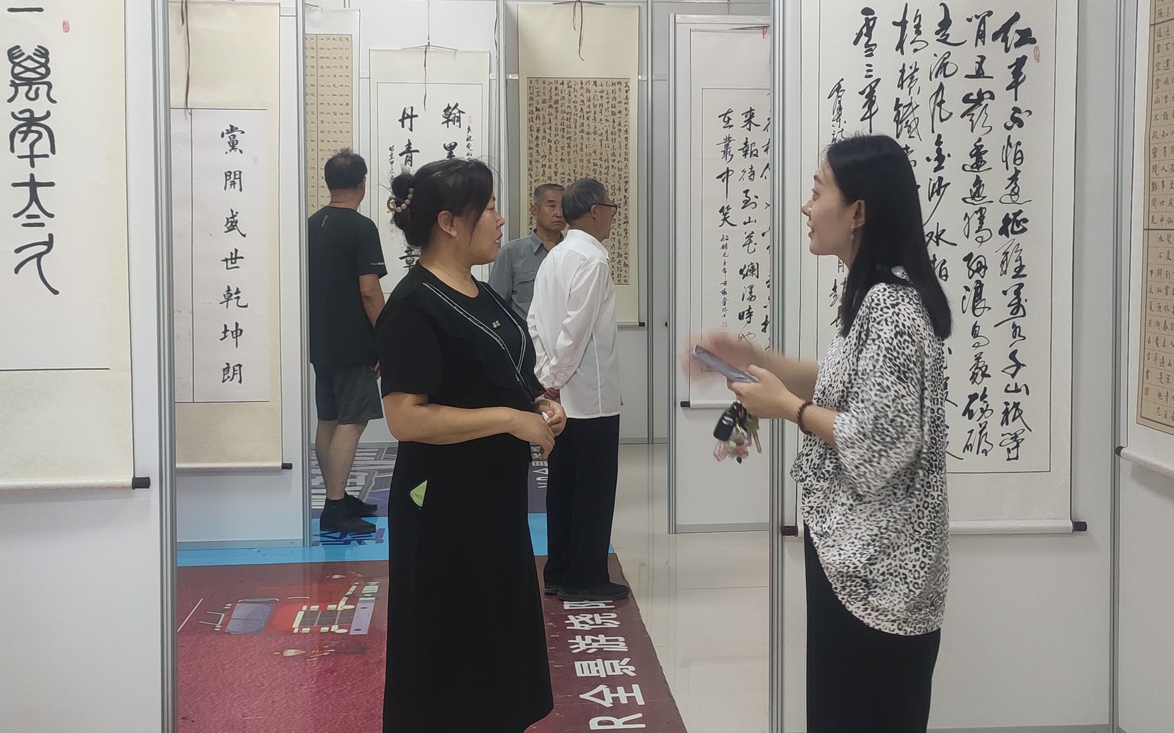 在绘画作品展区,百余幅美术作品涉及花鸟、山水、人物,题材繁多,笔墨淋漓,色彩斑斓,充分讴歌了党的光辉历程和伟大成就,吸引了众多群众驻足观看。“每一幅画都感觉很震撼,作品的名字也十分激励人心,比如‘翠华千载’‘山河多娇’等,能让人感受到奋发向上的时代精神,也能从中看到美好的未来。”前来观展的张晓明女士说。她一边看一边用手机拍下自己喜欢的作品,留着以后也可以慢慢观赏。