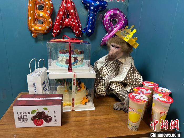图为衡水野生动物园,狒狒四周岁生日现场。陈章栋 摄