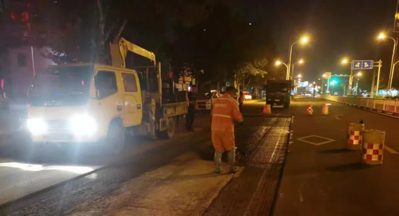 北外环榕花大街以东非机动车道,使用年限较长,出现多处坑洼破损等问题,不仅影响市民通行,也影响市容市貌。为改善这一状况,市政工程管理中心经过实地勘察,科学制定整修施工方案。为不影响群众通行,施工均安排在夜间进行,分段作业,逐步推进。施工人员严格按照道路施工技术规范,对原有坑洼破损路面进行铣刨处理,摊铺沥青混凝土。