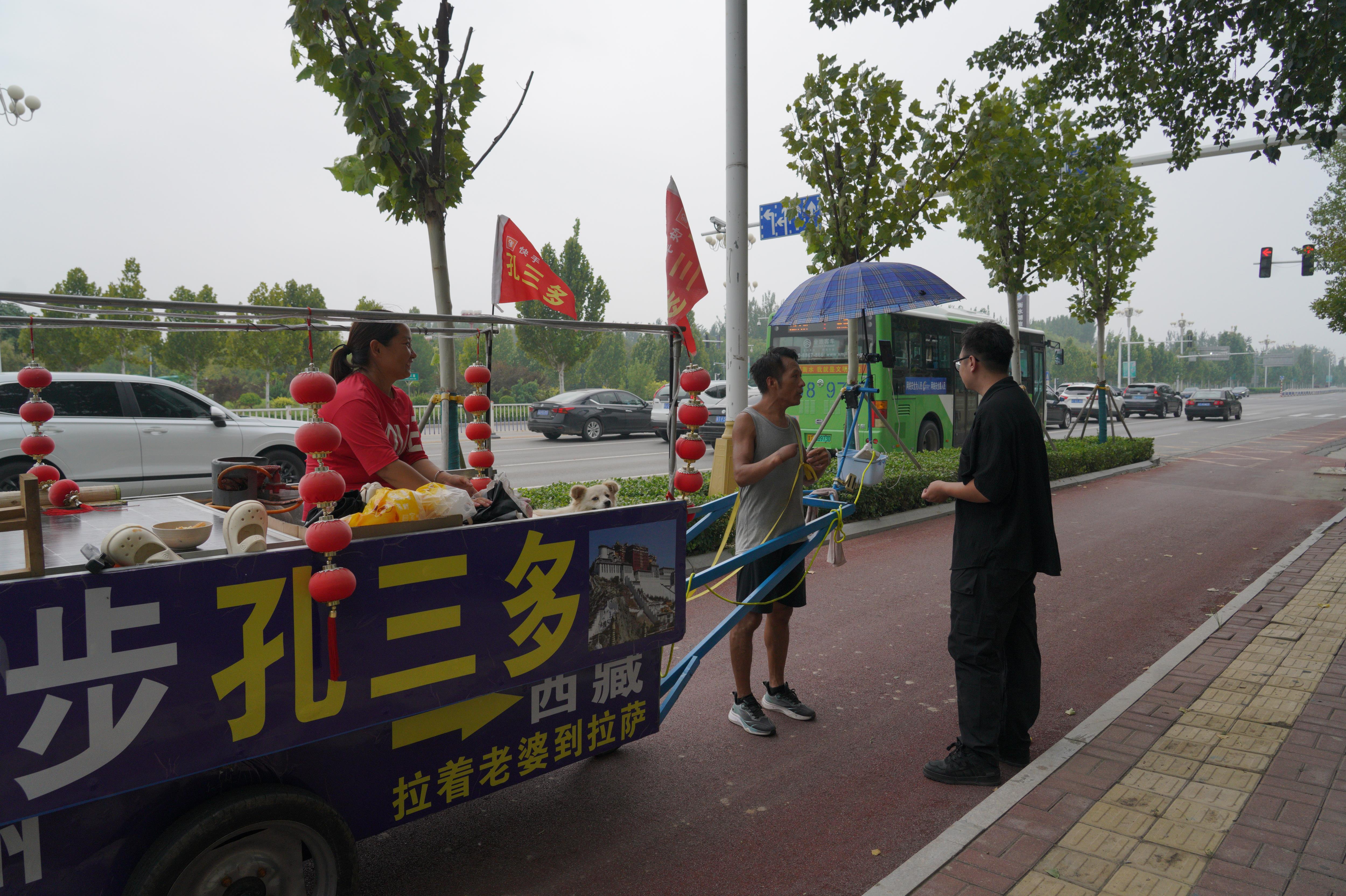 迎着微凉的小雨,孔三多沿着衡水市桃城区红旗大街拉着车一直往南奔跑着,这是孔三多徒步拉车去西藏的第33天。一边直播,一边感受沿途城市风土人情。如今,他和未婚妻肖大美正途经衡水,白鹭踩荷,在风光秀丽的衡水湖旁直播时,他告诉我们,预计十个月,他们就可以进入西藏,计划明年8月底抵达拉萨。