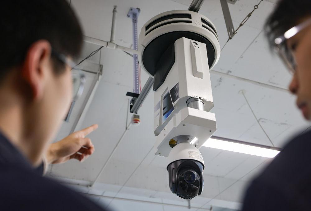9月2日,唐山中弘广泰电子科技有限公司员工调试电力巡检机器人。(受访单位供图)