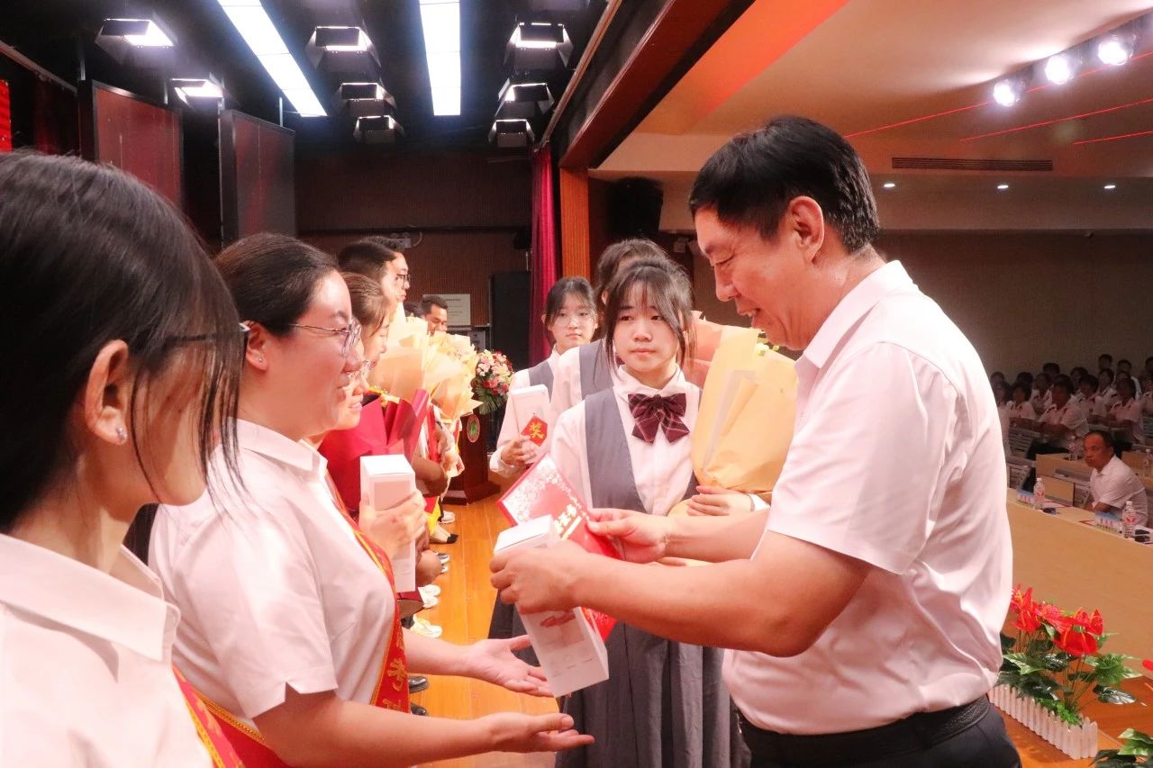 教师代表刘英莉、贾丽娜上台发言,分享了教书育人的心得与感悟,并鼓励学生们珍惜时光,勇于追梦,也希望全体教师可以同心同向同行,手执踔厉奋进之笔,书写育人华章。