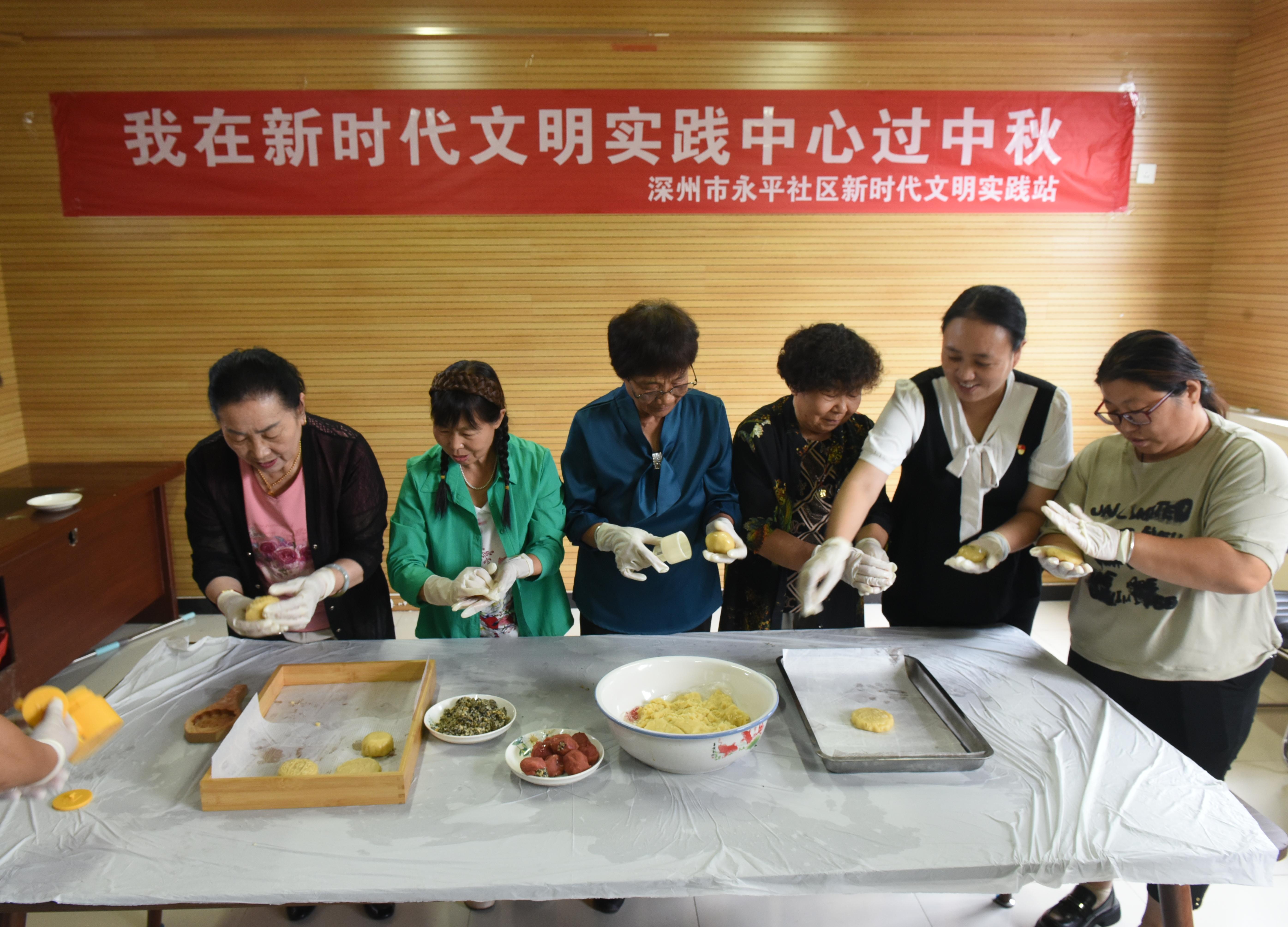 当日,在市区永平社区新时代文明实践站,居民们围坐在一起,亲手制作月饼,并送到社区“五老”人员手上,弘扬尊老爱幼的传统美德。接下来,深州市将依托遍及城乡的新时代文明实践中心(所、站)等平台,以“我为深州立新功‘双争’有我在行动”为载体,广泛开展以“我在新时代文明实践中心过中秋”为主题的系列活动,丰富群众精神文化生活,营造欢乐、祥和的中秋节日氛围。