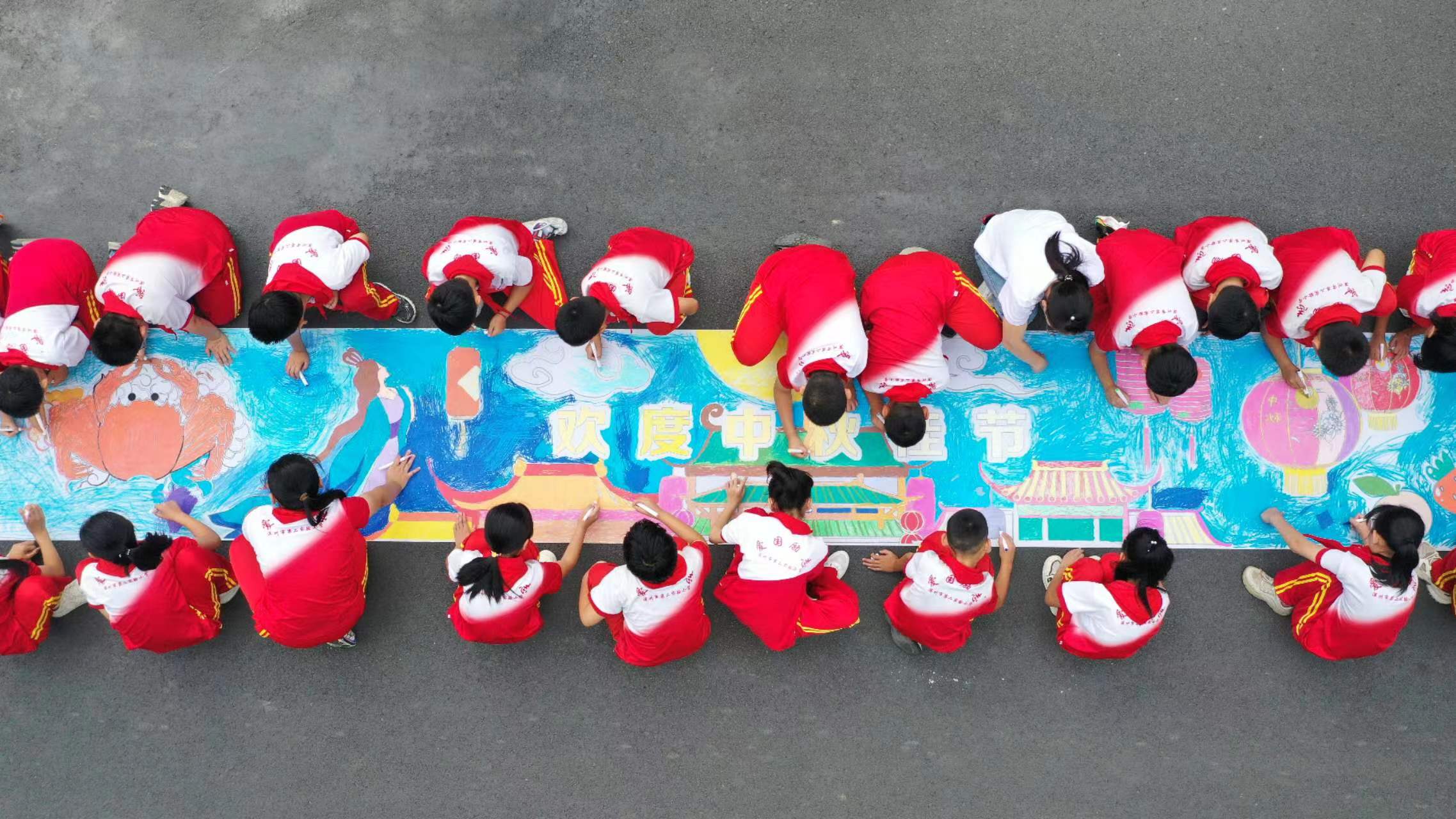 活动中,在志愿者和老师们的指导下,来自深州市第二实验小学的学生们手持画笔,或凝神构思,或挥毫泼墨,共同绘制出一幅“中秋”主题百米巨幅画卷,以特有方式表达对中秋团圆的美好祝愿,让中华优秀传统文化浸润童心。