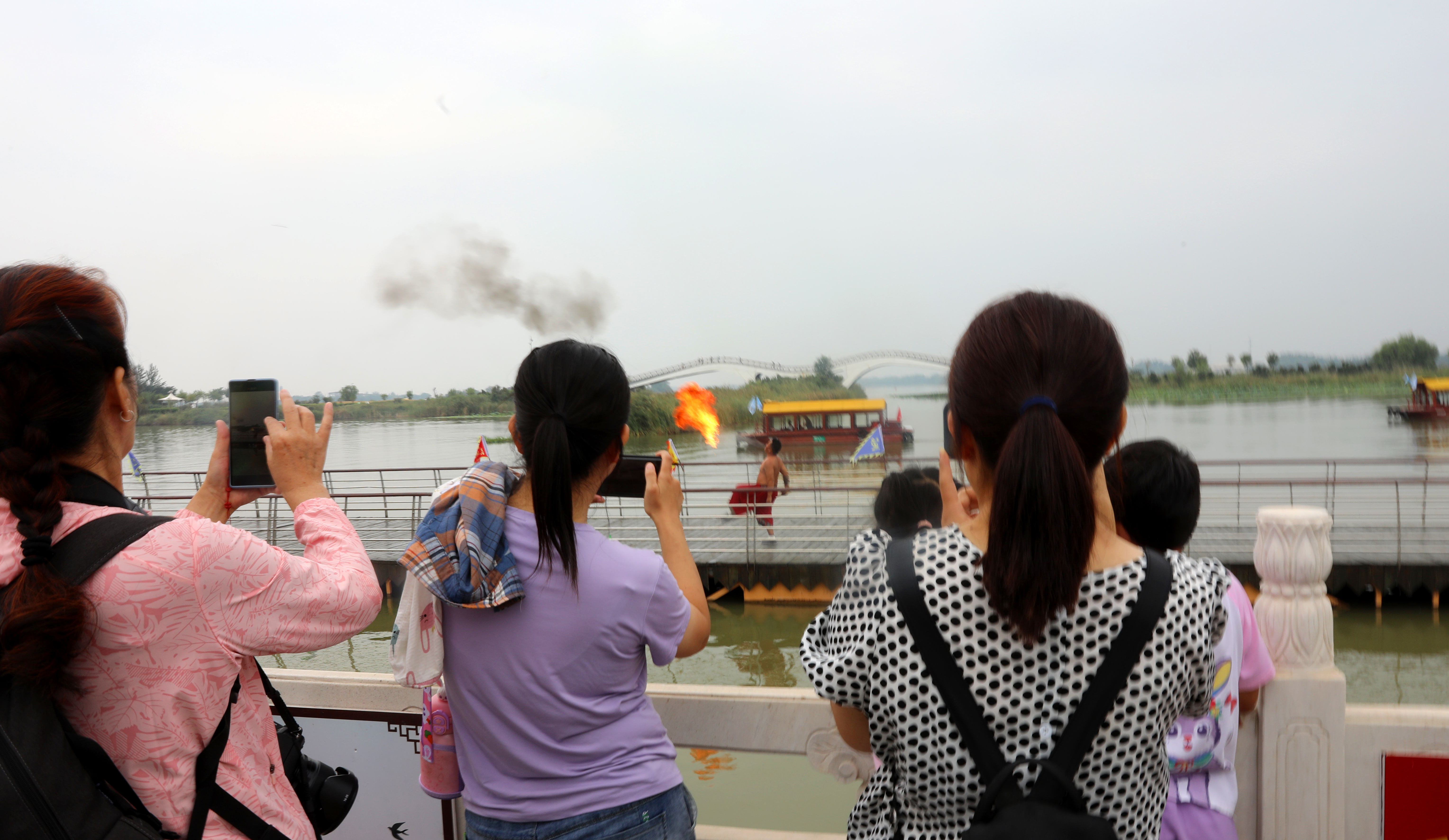 水上演艺新篇章。当晨光初破晓,衡水湖上已是一片欢腾。此时,一艘艘渔舟悄然驶出,渔夫们或站或坐,手持渔网,唱起了悠扬的歌声。歌声中充满了对生活的热爱和对自然的敬畏,让人不由自主地沉醉其中,在中秋这个特别的日子里,为衡水湖旅游景区更添了几分节日的喜庆。渔夫们以歌传情,用悠扬的渔歌庆祝中秋的团圆与丰收,让每一缕阳光都承载着满满的祝福与希望。